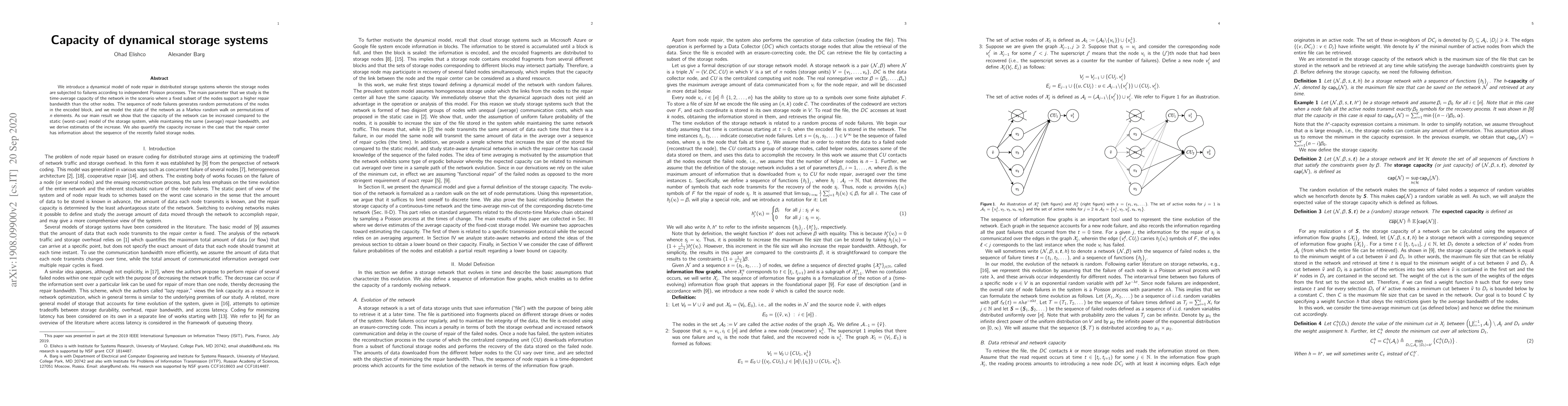 Researchers developed a model to analyze dynamic storage systems with repair nodes that can adapt to failures, finding they can increase capacity while maintaining average repair bandwidth.