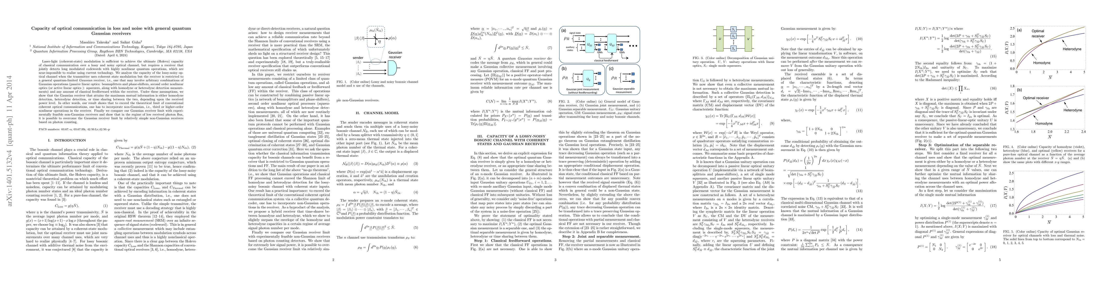 This paper investigates the capacity of optical communication channels under loss and noise when using coherent-state modulation but general quantum-limited Gaussian receivers. It finds that the optimal Gaussian receiver is either homodyne or heterodyne detection, and that exceeding the Gaussian limit requires incorporating non-Gaussian, higher-order nonlinear operations in the receiver.