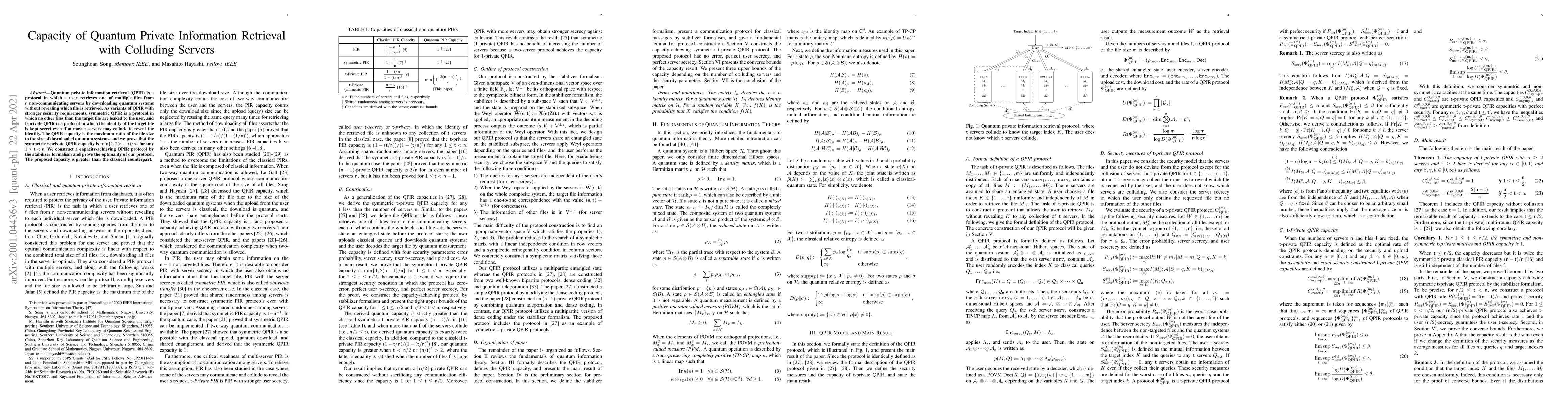 Researchers proved that quantum private information retrieval capacity can reach up to 2(n-t)/n for certain server collusions, outperforming classical counterparts.