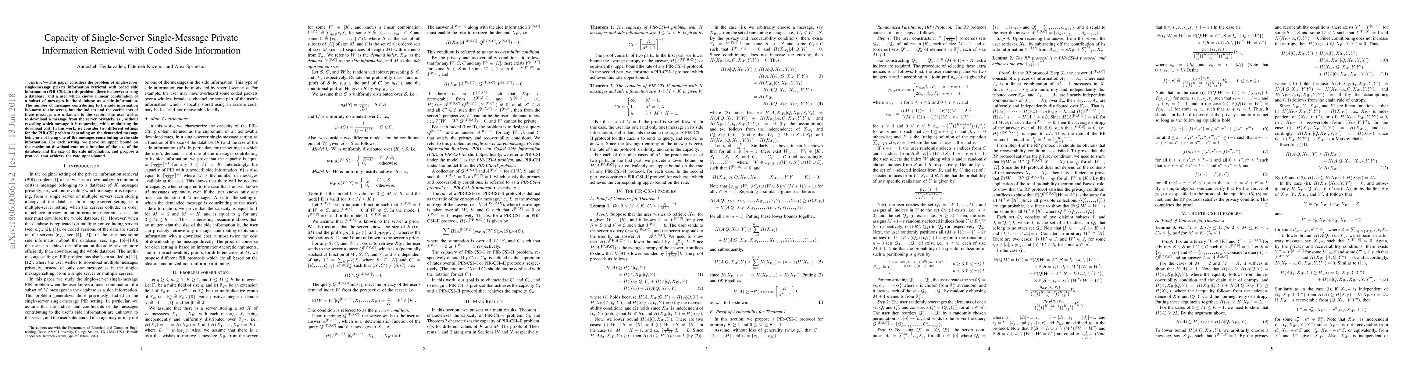 This paper explores single-server single-message private information retrieval with coded side information (PIR-CSI), focusing on scenarios where a user knows a linear combination of some database messages. It proposes protocols achieving upper bounds on download rates for two settings, depending on whether the requested message is part of the side information.