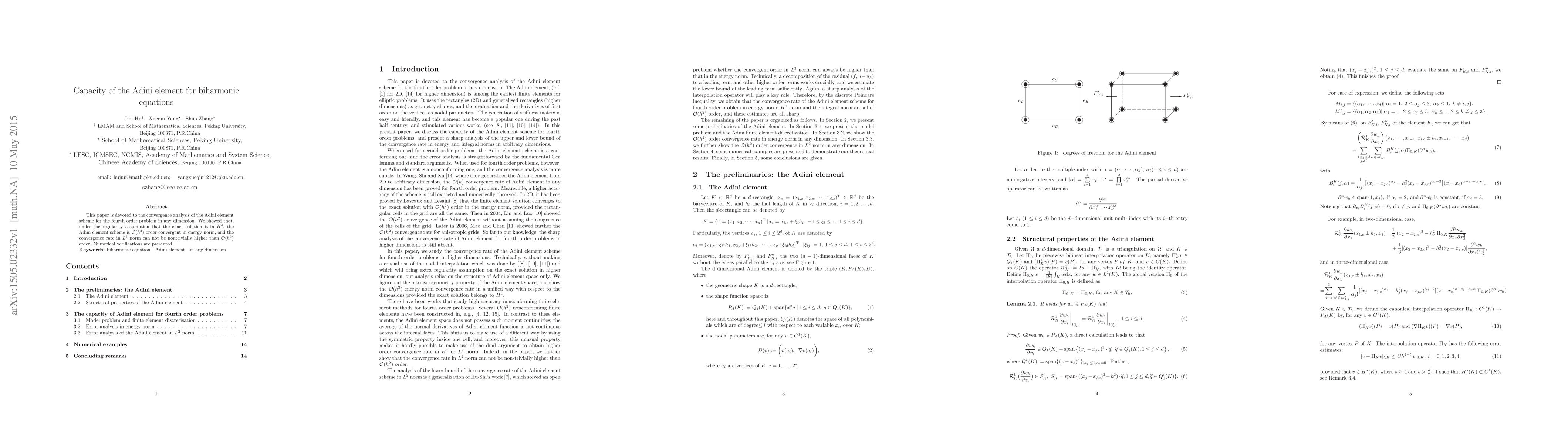 This paper is devoted to the convergence analysis of the Adini element scheme for the fourth order problem in arbitrary dimension. We prove that, the Adini element scheme is $\mathcal{O}(h^2)$ order convergent in energy norm provided the exact solution is in $H^4$, and the convergence rate in $L^2$ norm can not be nontrivially higher than $\mathcal{O}(h^2)$ order. Numerical verifications are presented.