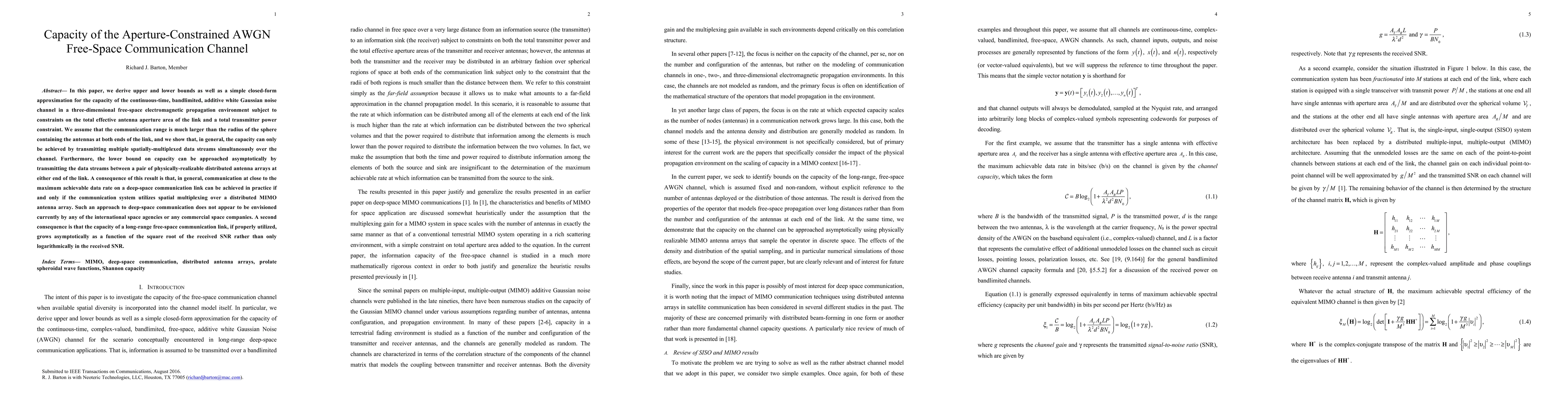 In this paper, we derive upper and lower bounds as well as a simple closed-form approximation for the capacity of the continuous-time, bandlimited, additive white Gaussian noise channel in a three-dimensional free-space electromagnetic propagation environment subject to constraints on the total effective antenna aperture area of the link and a total transmitter power constraint. We assume that the communication range is much larger than the radius of the sphere containing the antennas at both ends of the link, and we show that, in general, the capacity can only be achieved by transmitting multiple spatially-multiplexed data streams simultaneously over the channel. Furthermore, the lower bound on capacity can be approached asymptotically by transmitting the data streams between a pair of physically-realizable distributed antenna arrays at either end of the link. A consequence of this result is that, in general, communication at close to the maximum achievable data rate on a deep-space communication link can be achieved in practice if and only if the communication system utilizes spatial multiplexing over a distributed MIMO antenna array. Such an approach to deep-space communication does not appear to be envisioned currently by any of the international space agencies or any commercial space companies. A second consequence is that the capacity of a long-range free-space communication link, if properly utilized, grows asymptotically as a function of the square root of the received SNR rather than only logarithmically in the received SNR.