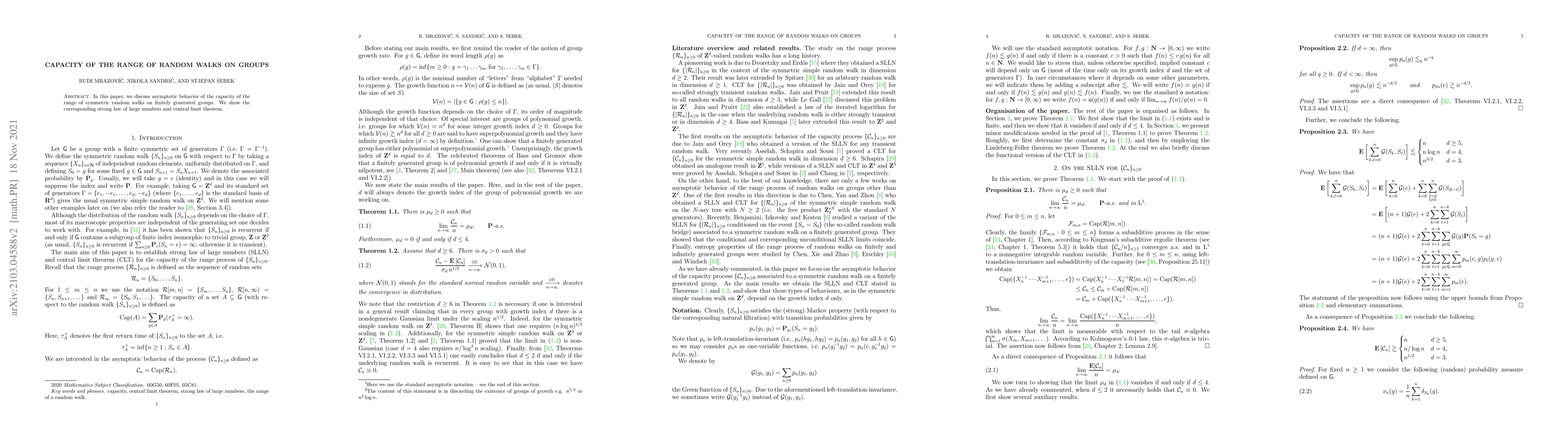 Researchers studied the behavior of random walks on groups, finding a strong law of large numbers and central limit theorem for their asymptotic capacity.