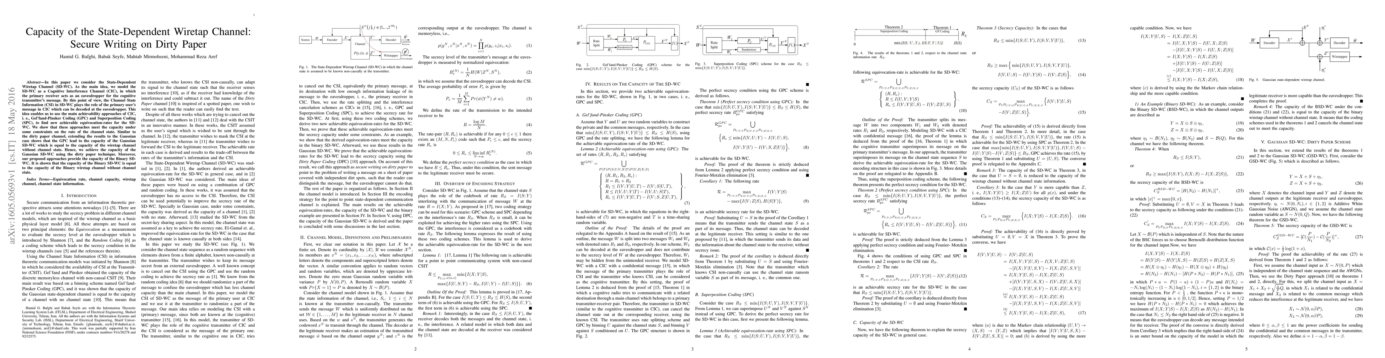 This paper investigates the capacity of the State-Dependent Wiretap Channel (SD-WC) by modeling it as a Cognitive Interference Channel (CIC). It employs Gel'fand-Pinsker Coding and Superposition Coding to derive new achievable equivocation-rates, achieving the capacity of the Gaussian SD-WC using the dirty paper technique and proving the capacity equivalence for the Binary SD-WC.