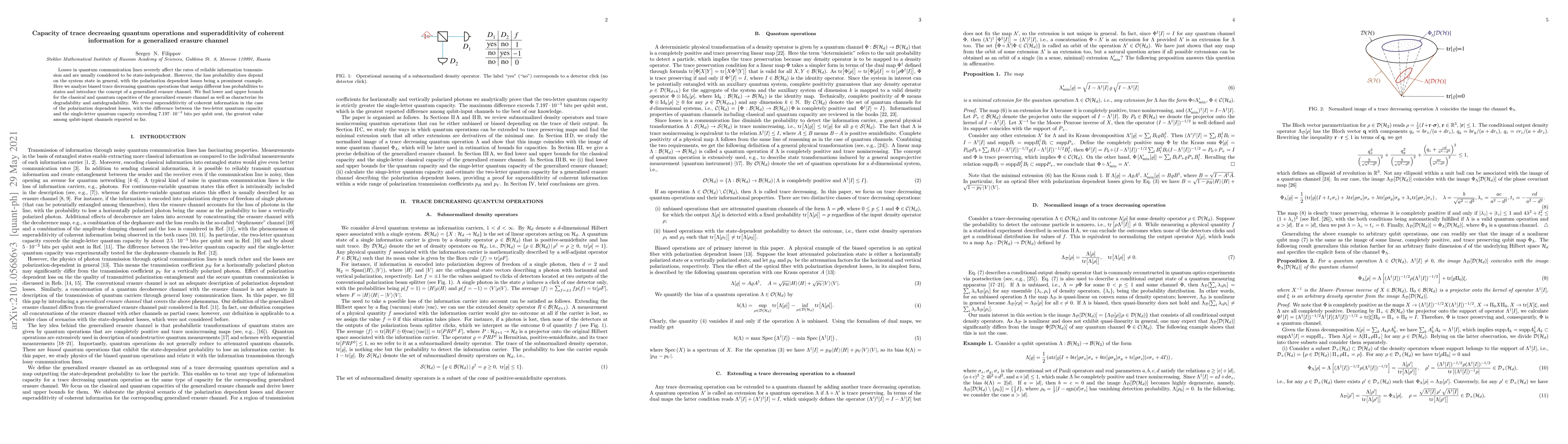 This paper investigates the capacity of quantum operations that vary loss probabilities based on system states, introducing a generalized erasure channel model. It establishes bounds for both classical and quantum capacities, demonstrating superadditivity of coherent information, with a notable difference of $7.197 \cdot 10^{-3}$ bit per qubit for polarization dependent losses.