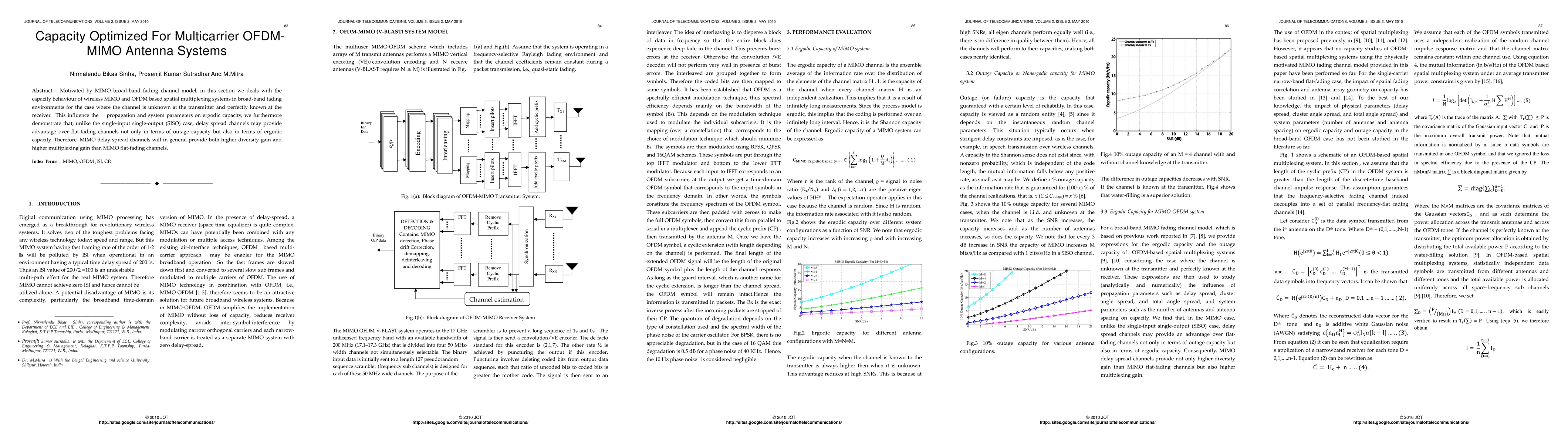 Motivated by MIMO broad-band fading channel model, in this section we deals with the capacity behaviour of wireless MIMO and OFDM based spatial multiplexing systems in broad-band fading environments for the case where the channel is unknown at the transmitter and perfectly known at the receiver. This influence the propagation and system parameters on ergodic capacity, we furthermore demonstrate that, unlike the single-input single-output (SISO) case, delay spread channels may provide advantage over flat-fading channels not only in terms of outage capacity but also in terms of ergodic capacity. Therefore, MIMO delay spread channels will in general provide both higher diversity gain and higher multiplexing gain than MIMO flat-fading channels.
