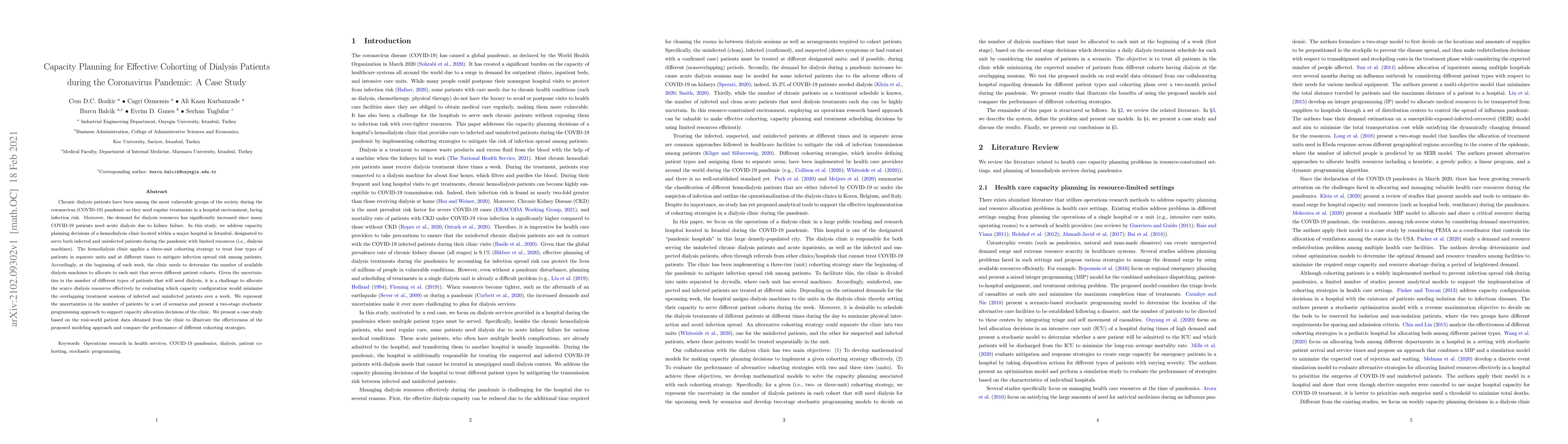 This study explores capacity planning for a hemodialysis clinic in Istanbul to manage COVID-19 and non-COVID-19 dialysis patients using a three-unit cohorting strategy, employing a two-stage stochastic programming approach to optimize resource allocation amidst patient demand uncertainties. The case study demonstrates the effectiveness of the proposed model using real-world patient data.