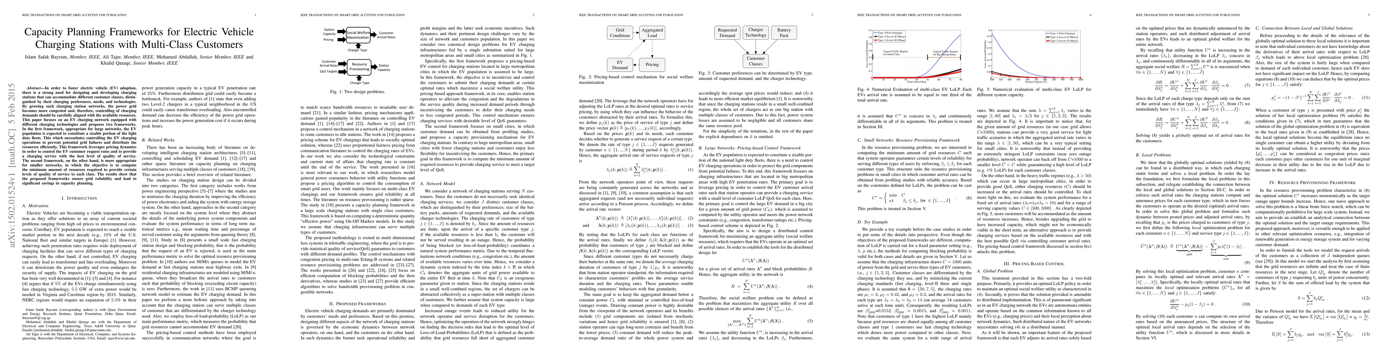 This paper proposes two frameworks for capacity planning in electric vehicle charging networks, addressing multi-class customer needs and charging technologies. The first framework uses pricing dynamics to manage large networks and prevent grid failures, while the second computes resource requirements for smaller networks to ensure quality service, demonstrating improved grid reliability and capacity planning efficiency.