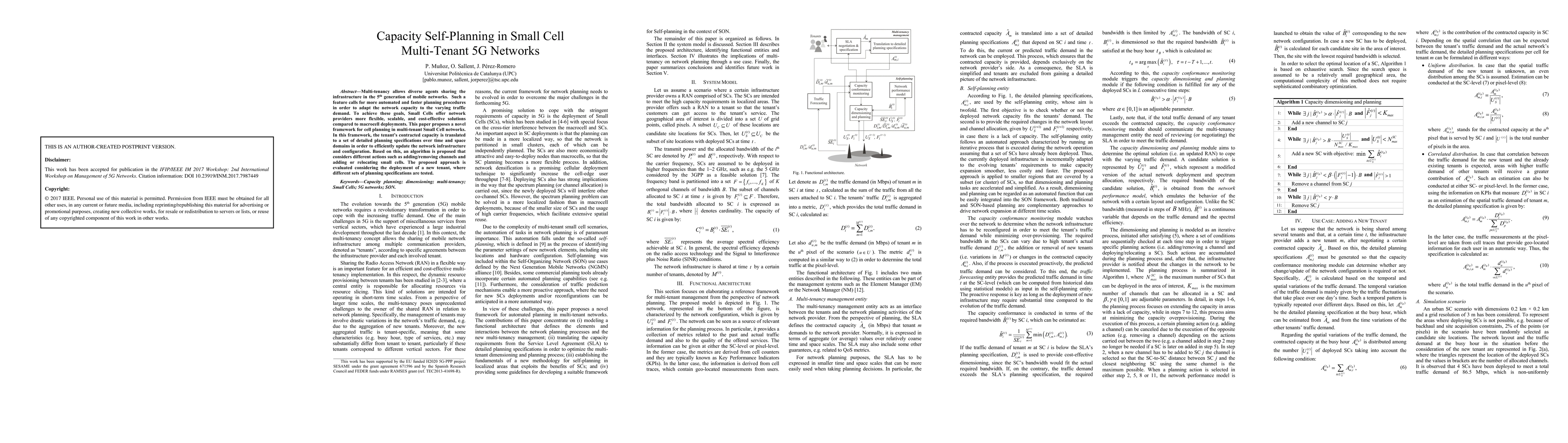 This paper introduces a novel framework for capacity self-planning in multi-tenant Small Cell 5G networks, translating contracted capacities into detailed planning specifications. An algorithm is proposed to manage actions like adding/removing channels and relocating small cells, evaluated through simulations for new tenant deployments.