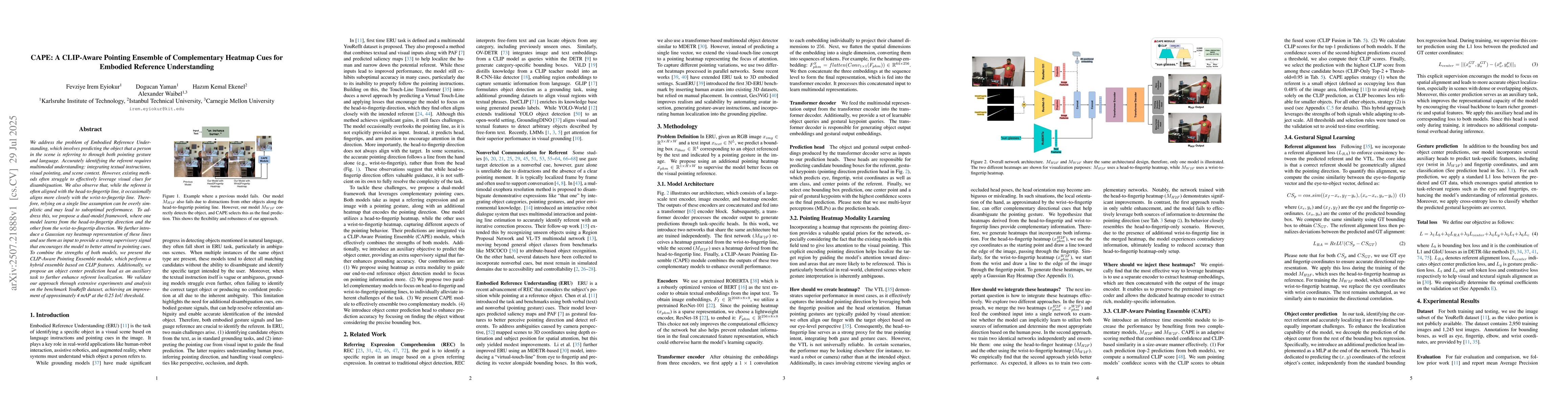 We address the problem of Embodied Reference Understanding, which involves predicting the object that a person in the scene is referring to through both pointing gesture and language. Accurately identifying the referent requires multimodal understanding: integrating textual instructions, visual pointing, and scene context. However, existing methods often struggle to effectively leverage visual clues for disambiguation. We also observe that, while the referent is often aligned with the head-to-fingertip line, it occasionally aligns more closely with the wrist-to-fingertip line. Therefore, relying on a single line assumption can be overly simplistic and may lead to suboptimal performance. To address this, we propose a dual-model framework, where one model learns from the head-to-fingertip direction and the other from the wrist-to-fingertip direction. We further introduce a Gaussian ray heatmap representation of these lines and use them as input to provide a strong supervisory signal that encourages the model to better attend to pointing cues. To combine the strengths of both models, we present the CLIP-Aware Pointing Ensemble module, which performs a hybrid ensemble based on CLIP features. Additionally, we propose an object center prediction head as an auxiliary task to further enhance referent localization. We validate our approach through extensive experiments and analysis on the benchmark YouRefIt dataset, achieving an improvement of approximately 4 mAP at the 0.25 IoU threshold.
