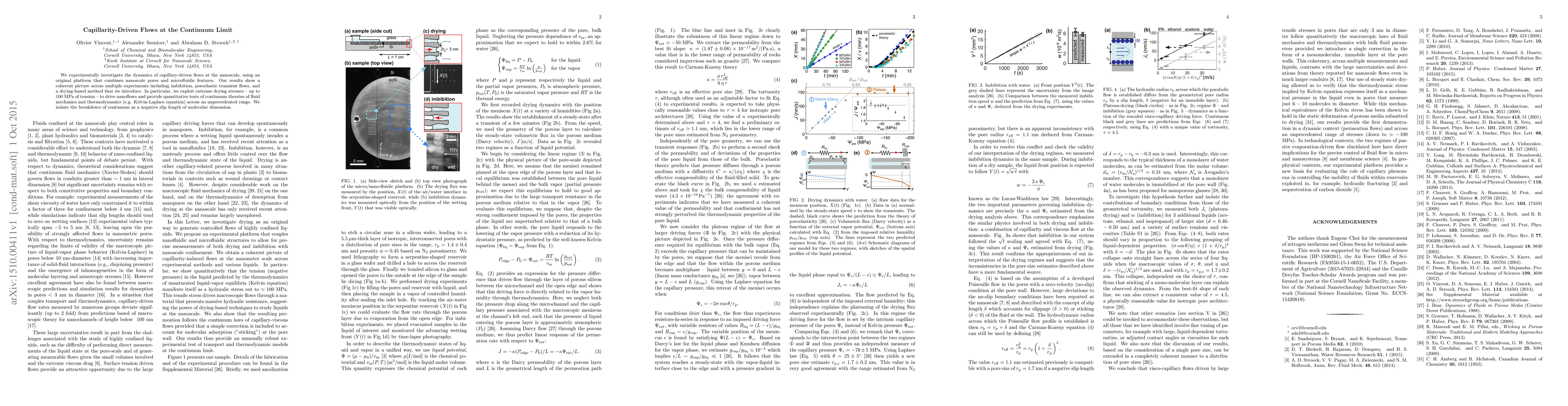 We experimentally investigate the dynamics of capillary-driven flows at the nanoscale, using an original platform that combines nanoscale pores and microfluidic features. Our results show a coherent picture across multiple experiments including imbibition, poroelastic transient flows, and a drying-based method that we introduce. In particular, we exploit extreme drying stresses - up to 100 MPa of tension - to drive nanoflows and provide quantitative tests of continuum theories of fluid mechanics and thermodynamics (e.g. Kelvin-Laplace equation) across an unprecedented range. We isolate the breakdown of continuum as a negative slip length of molecular dimension.