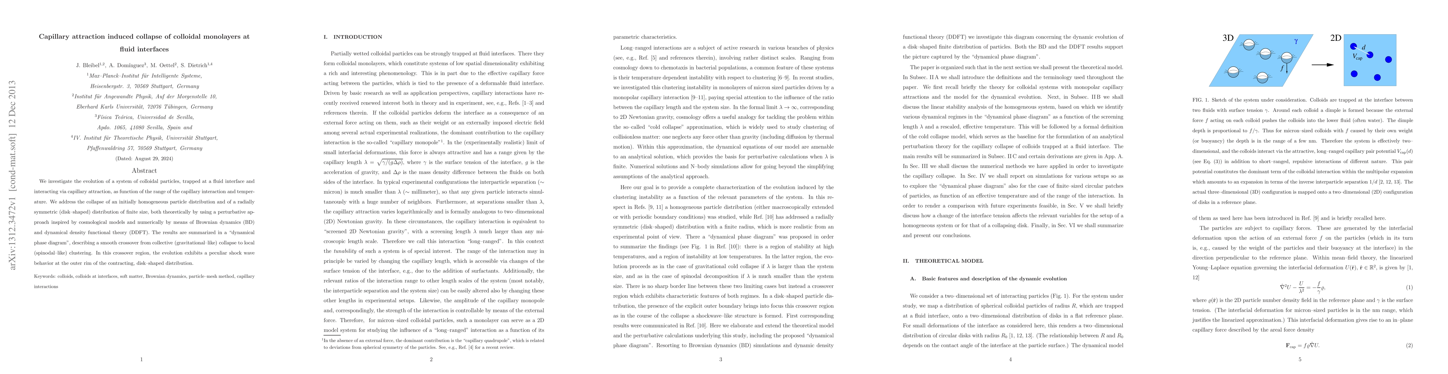 This paper explores the collapse dynamics of colloidal monolayers at fluid interfaces driven by capillary attraction, using both theoretical and numerical approaches. The study reveals a "dynamical phase diagram" showing a transition from collective collapse to local clustering, with a shock wave behavior observed in the contracting disk-shaped distribution.