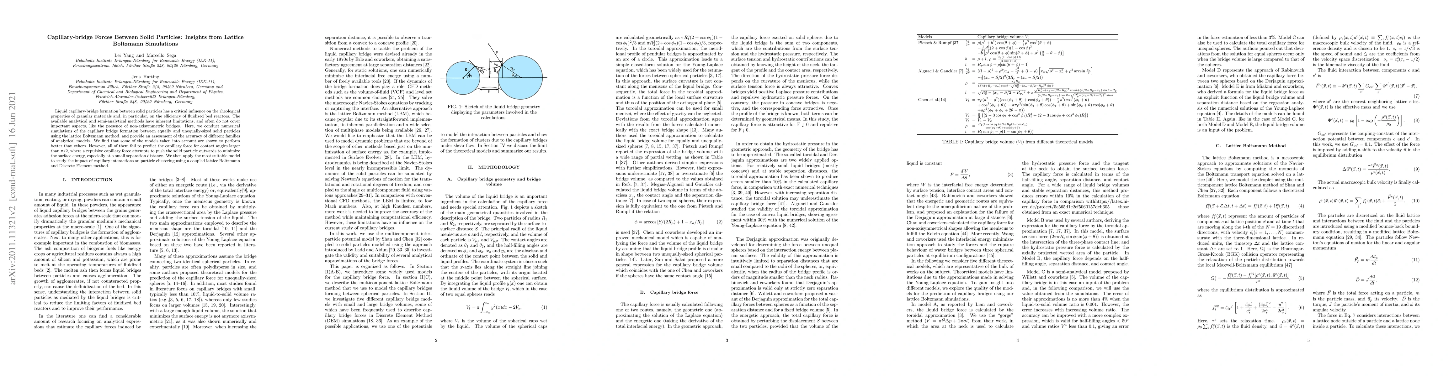 Liquid capillary-bridge formation between solid particles has a critical influence on the rheological properties of granular materials and, in particular, on the efficiency of fluidized bed reactors. The available analytical and semi-analytical methods have inherent limitations, and often do not cover important aspects, like the presence of non-axisymmetric bridges. Here, we conduct numerical simulations of the capillary bridge formation between equally and unequally-sized solid particles using the lattice Boltzmann method, and provide an assessment of the accuracy of different families of analytical models. We find that some of the models taken into account are shown to perform better than others. However, all of them fail to predict the capillary force for contact angles larger than $\pi/2$, where a repulsive capillary force attempts to push the solid particle outwards to minimize the surface energy, especially at a small separation distance.