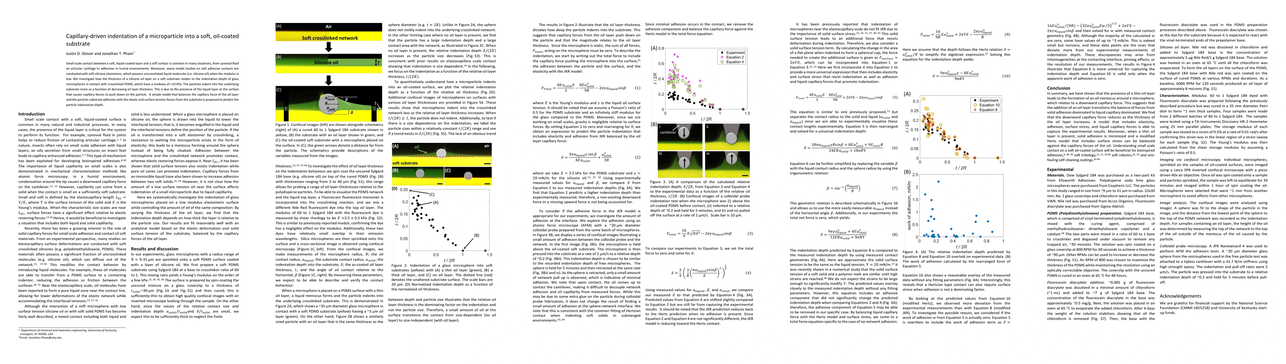 This study investigates the capillary-driven indentation of glass microspheres into a soft, oil-coated substrate, finding that decreasing oil layer thickness increases indentation depth due to enhanced capillary forces. A model balancing capillary and adhesion forces with substrate elastic and surface tension effects is proposed to predict the indentation depth.
