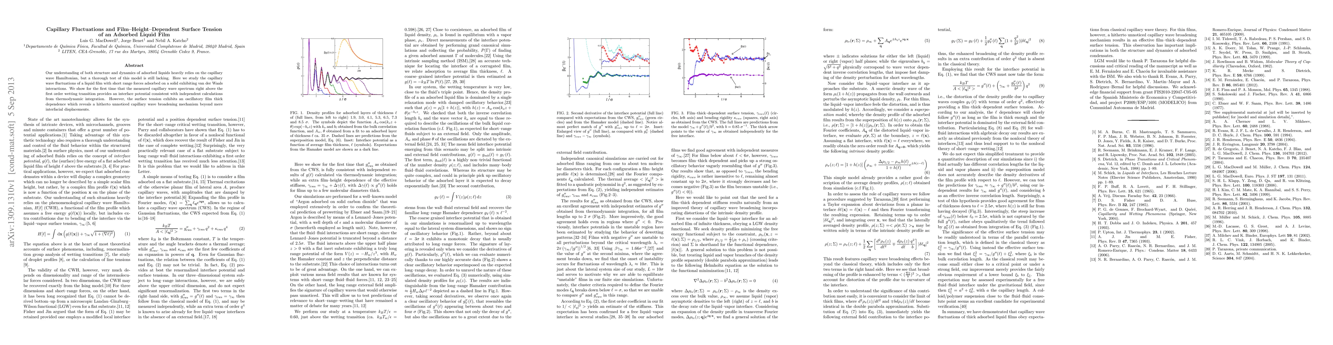 This study investigates capillary wave fluctuations in an adsorbed liquid film, demonstrating that the capillary wave spectrum near the wetting transition matches interface potential calculations, yet reveals an unexpected oscillatory film-thickness dependence of surface tension linked to a new capillary wave broadening mechanism.