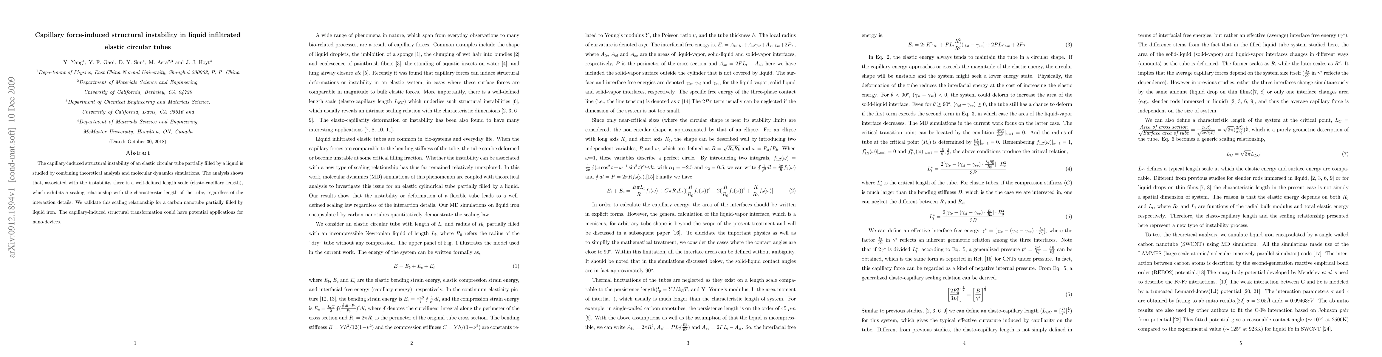 The capillary-induced structural instability of an elastic circular tube partially filled by a liquid is studied by combining theoretical analysis and molecular dynamics simulations. The analysis shows that, associated with the instability, there is a well-defined length scale (elasto-capillary length), which exhibits a scaling relationship with the characteristic length of the tube, regardless of the interaction details. We validate this scaling relationship for a carbon nanotube partially filled by liquid iron. The capillary-induced structural transformation could have potential applications for nano-devices.