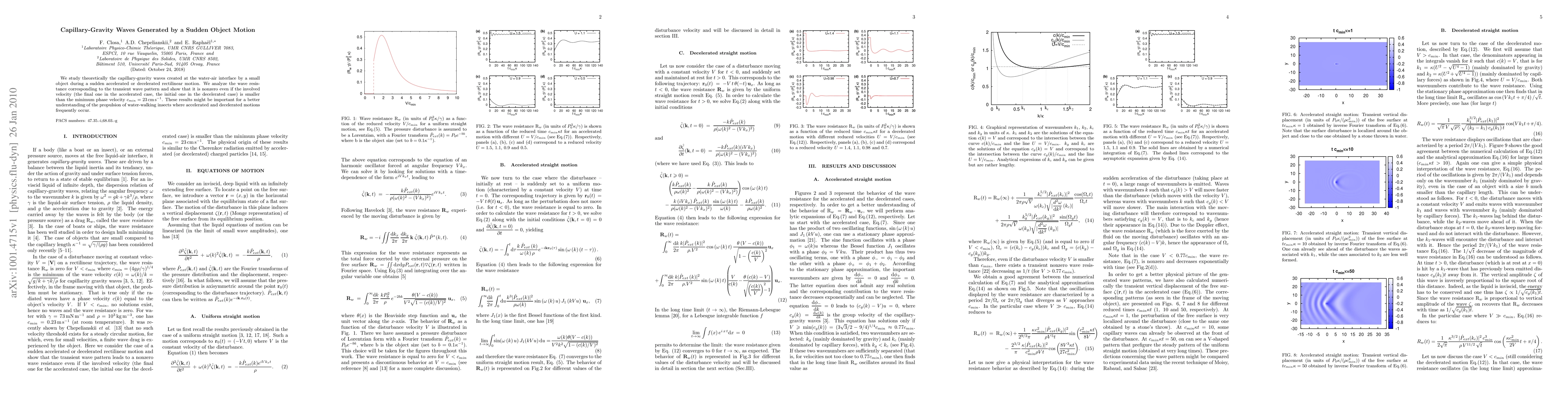 We study theoretically the capillary-gravity waves created at the water-air interface by a small object during a sudden accelerated or decelerated rectilinear motion. We analyze the wave resistance corresponding to the transient wave pattern and show that it is nonzero even if the involved velocity (the final one in the accelerated case, the initial one in the decelerated case) is smaller than the minimum phase velocity $c_{min}=23 \mathrm{cm s^{-1}}$. These results might be important for a better understanding of the propulsion of water-walking insects where accelerated and decelerated motions frequently occur.