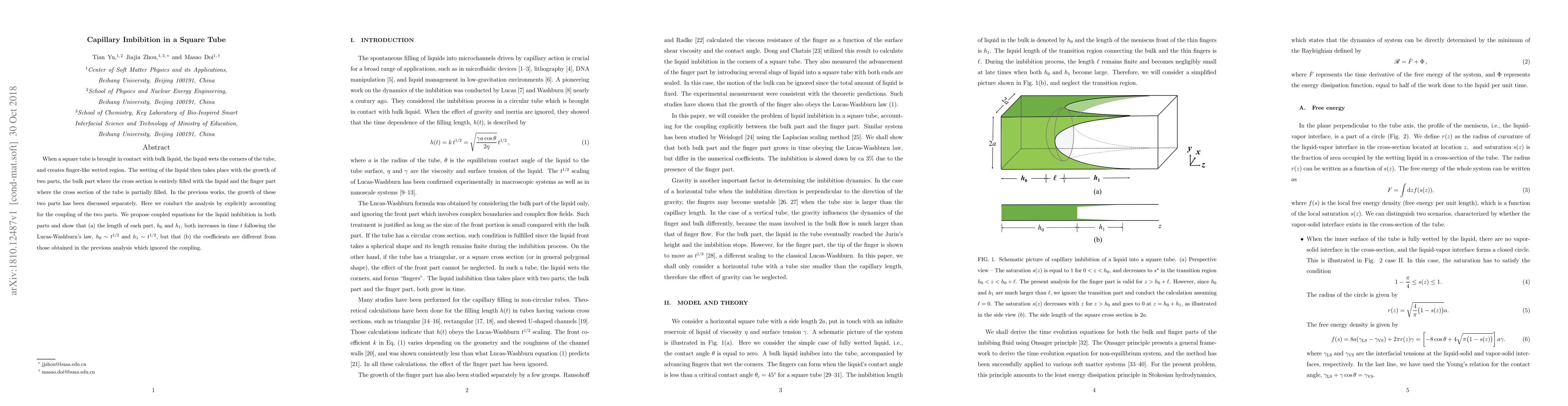 This paper investigates capillary imbibition in a square tube, analyzing the growth of two distinct wetting regions—the fully filled bulk part and the partially filled finger-like part—while considering their coupling. The study shows that both regions follow a $t^{1/2}$ growth law but with different coefficients compared to previous uncoupled analyses.