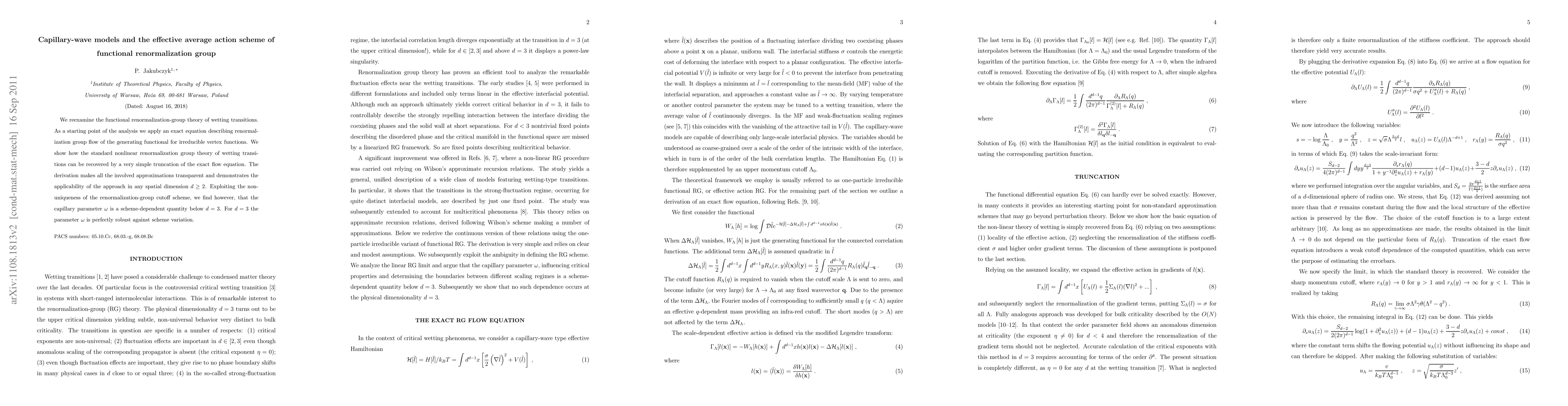 This paper reexamines the functional renormalization group theory for wetting transitions, demonstrating how the standard nonlinear theory can be derived from a simple truncation of the exact flow equation. The study reveals that the capillary parameter omega is scheme-dependent in dimensions below d=3 but becomes robust in three dimensions.