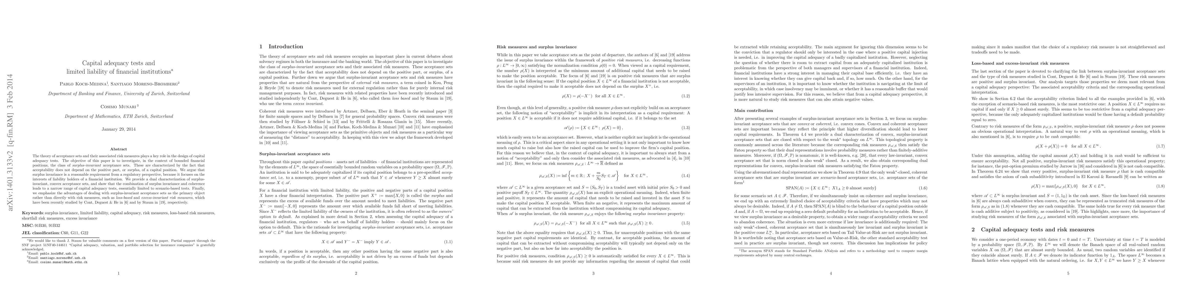 The theory of acceptance sets and their associated risk measures plays a key role in the design of capital adequacy tests. The objective of this paper is to investigate, in the context of bounded financial positions, the class of surplus-invariant acceptance sets. These are characterized by the fact that acceptability does not depend on the positive part, or surplus, of a capital position. We argue that surplus invariance is a reasonable requirement from a regulatory perspective, because it focuses on the interests of liability holders of a financial institution. We provide a dual characterization of surplus-invariant, convex acceptance sets, and show that the combination of surplus invariance and coherence leads to a narrow range of capital adequacy tests, essentially limited to scenario-based tests. Finally, we emphasize the advantages of dealing with surplus-invariant acceptance sets as the primary object rather than directly with risk measures, such as loss-based and excess-invariant risk measures, which have been recently studied by Cont, Deguest, and He (2013) and by Staum (2013), respectively.