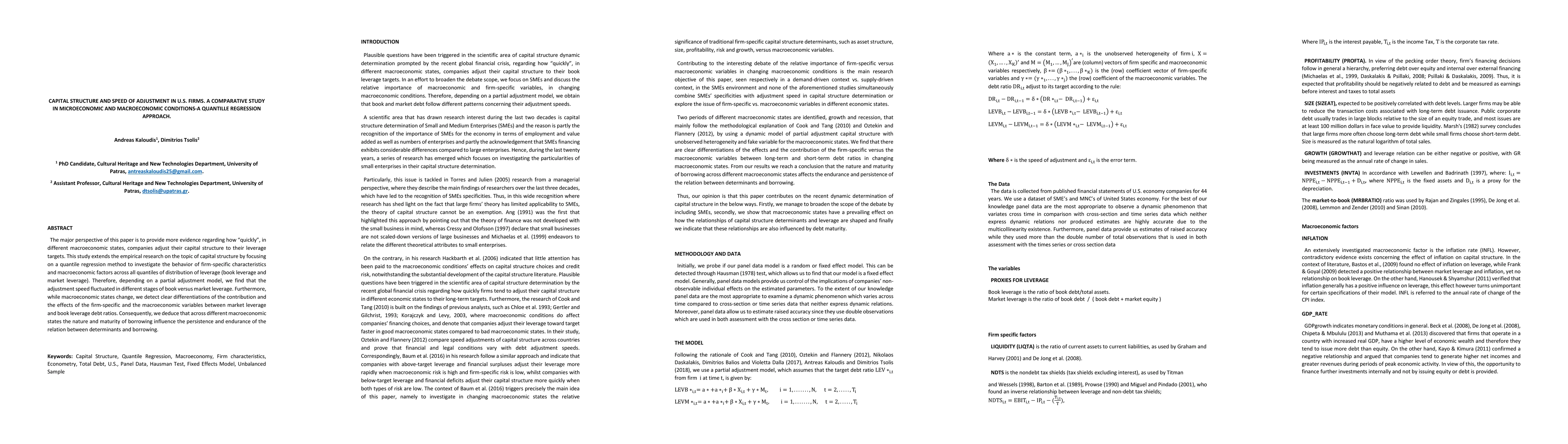 This paper uses quantile regression to examine how U.S. firms adjust their capital structure to leverage targets under varying macroeconomic conditions. The study finds that adjustment speed and the influence of firm-specific and macroeconomic variables differ significantly across different leverage quantiles, indicating that borrowing nature and maturity affect the persistence of these relationships.