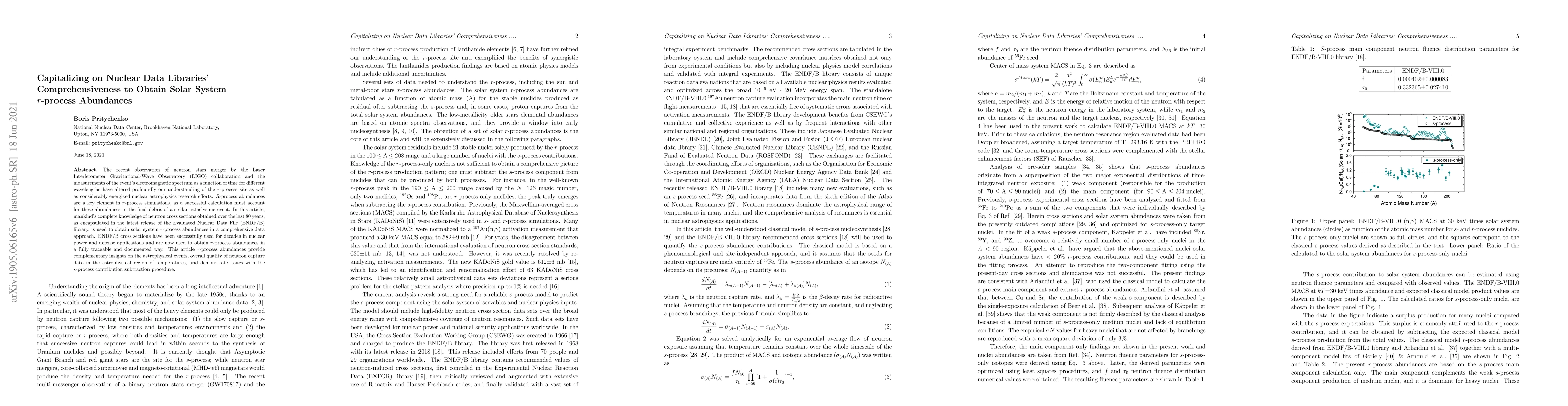 This research paper uses comprehensive nuclear data to calculate solar system r-process abundances, providing new insights into astrophysical events and validating neutron capture data. It also highlights issues with subtracting s-process contributions from the results.