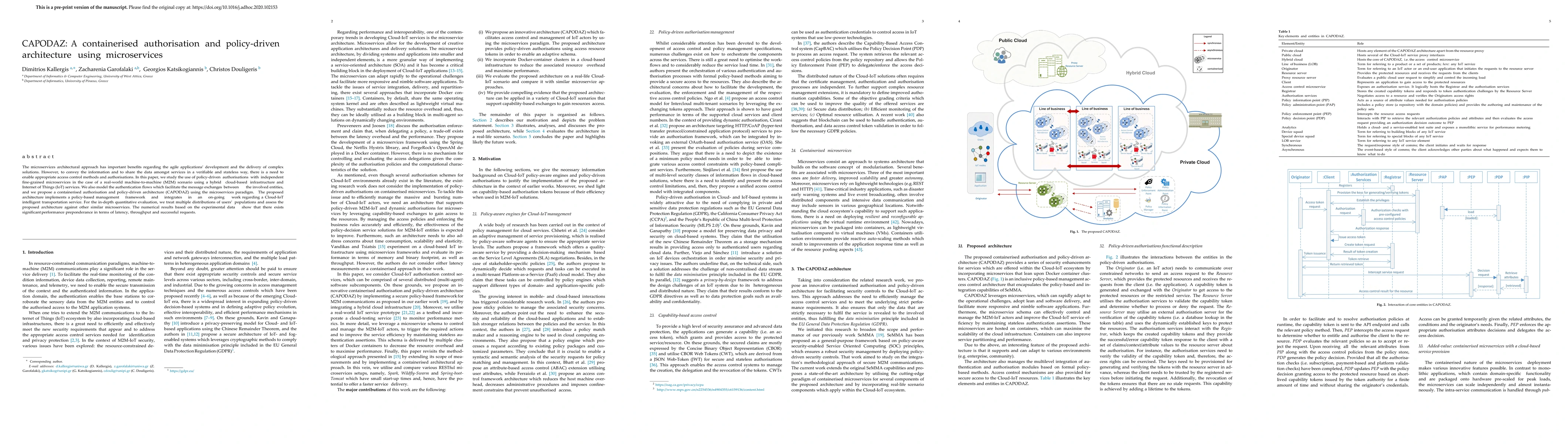 The paper proposes CAPODAZ, a containerised authorisation and policy-driven architecture using microservices, to manage access control in a hybrid cloud-based IoT scenario. Experimental results demonstrate significant performance improvements in latency, throughput, and successful requests compared to other microservices.