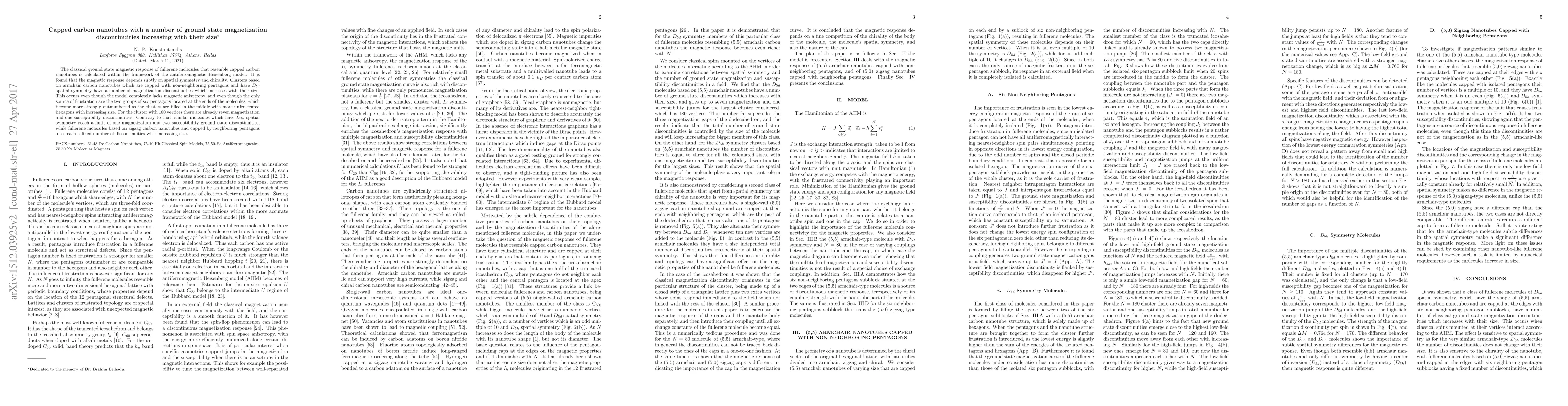 This research calculates the magnetic response of fullerene molecules mimicking capped carbon nanotubes using the antiferromagnetic Heisenberg model. It finds that armchair nanotube-based clusters with specific capping and symmetry exhibit a growing number of magnetization discontinuities without magnetic anisotropy or strong anisotropy sources, unlike other symmetrical clusters or zigzag nanotube-based ones.