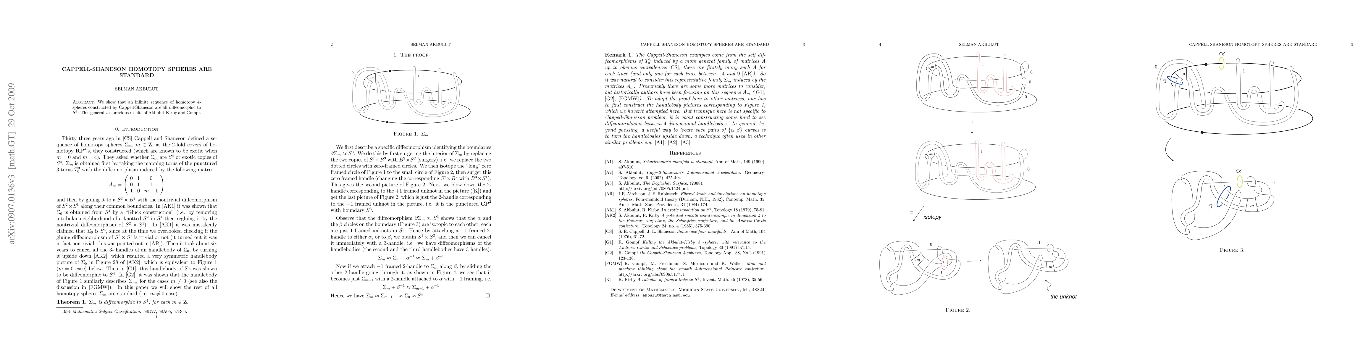 Summary: This paper demonstrates that an infinite sequence of homotopy 4-spheres created by Cappell-Shaneson are all diffeomorphic to the standard 4-sphere, S^4, extending the findings of Akbulut-Kirby and Gompf.