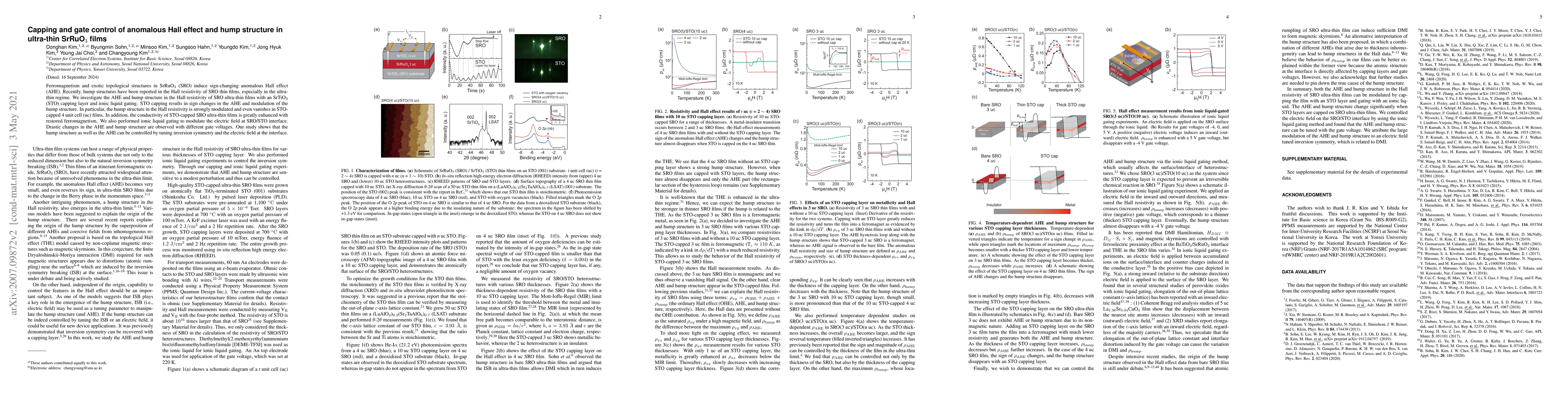This research investigates the anomalous Hall effect (AHE) and hump structures in ultra-thin SrRuO$_3$ films capped with SrTiO$_3$ and subjected to ionic liquid gating. SrTiO$_3$ capping alters the AHE sign and modulates hump structures, which vanish in 4 unit cell films. Ionic liquid gating further modifies these features, demonstrating control over AHE and hump structures via symmetry and interface electric field tuning.