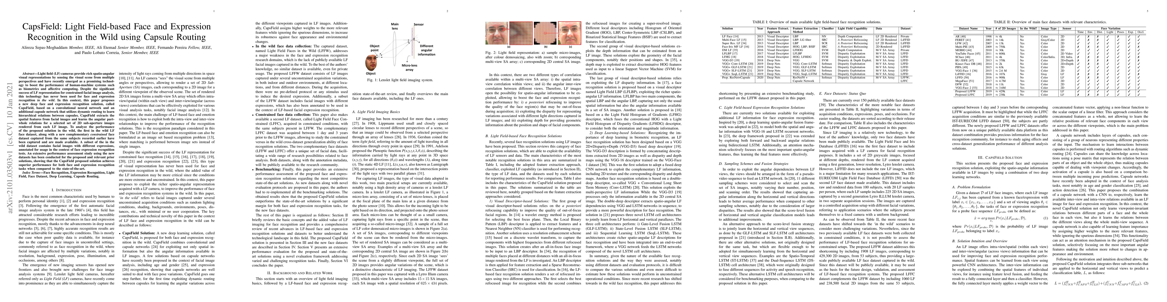 This paper proposes CapsField, a novel deep learning approach for face and expression recognition using light field cameras, integrating a convolutional neural network with a capsule network for hierarchical feature learning. The method achieves superior performance in real-world scenarios, as demonstrated through new datasets and extensive comparative studies.