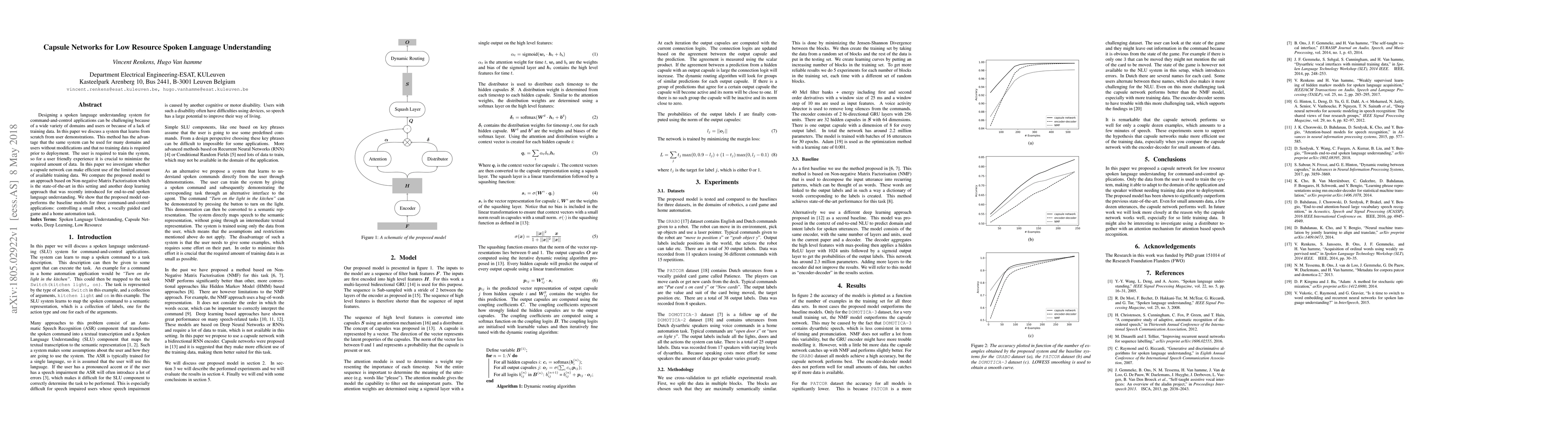 This paper proposes a capsule network for spoken language understanding in low-resource settings, enabling the system to learn from user demonstrations without prior training data. The model outperforms baselines in command-and-control applications, demonstrating its effectiveness in utilizing limited training data.
