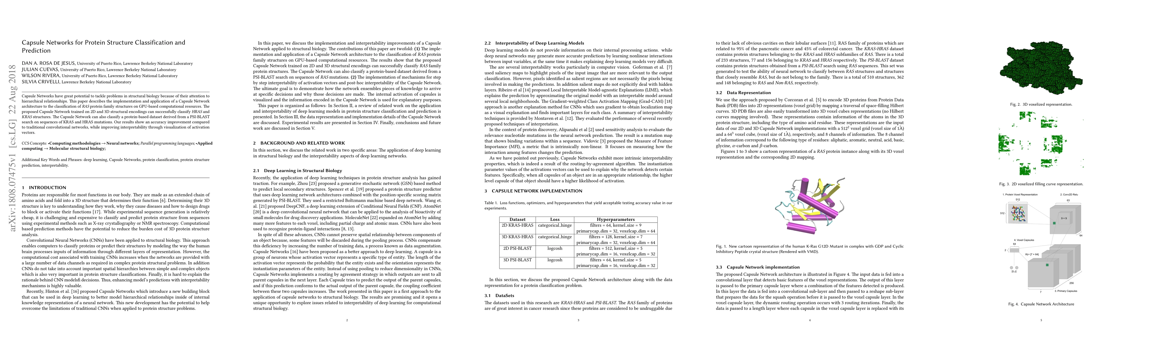 This paper explores the use of Capsule Networks for classifying RAS protein family structures, demonstrating improved accuracy over traditional convolutional networks and enhanced interpretability via activation vector visualization. The implementation leverages GPU resources for efficient computation.