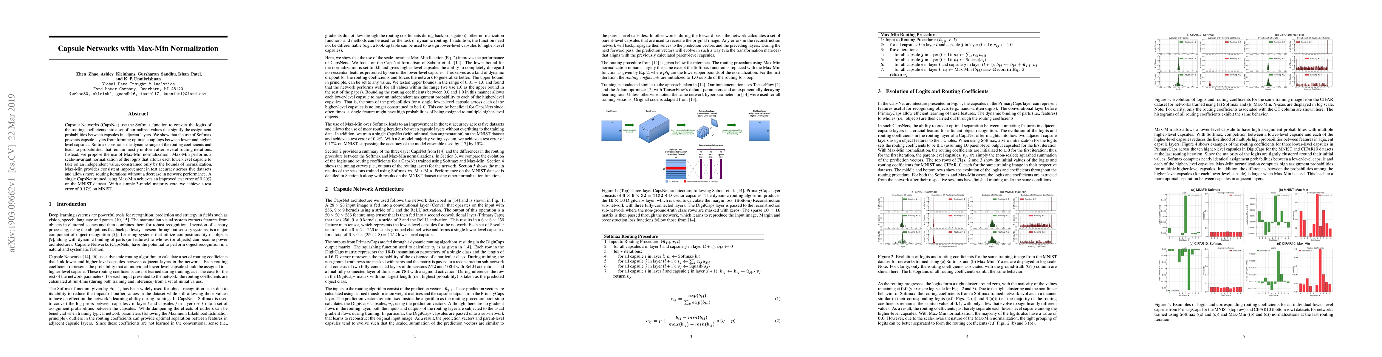 This paper proposes using Max-Min normalization instead of Softmax in Capsule Networks to improve coupling between capsules, resulting in better test accuracy across five datasets and a 0.20% test error improvement on MNIST. A 3-model majority vote further enhances performance to a 0.17% test error on MNIST.