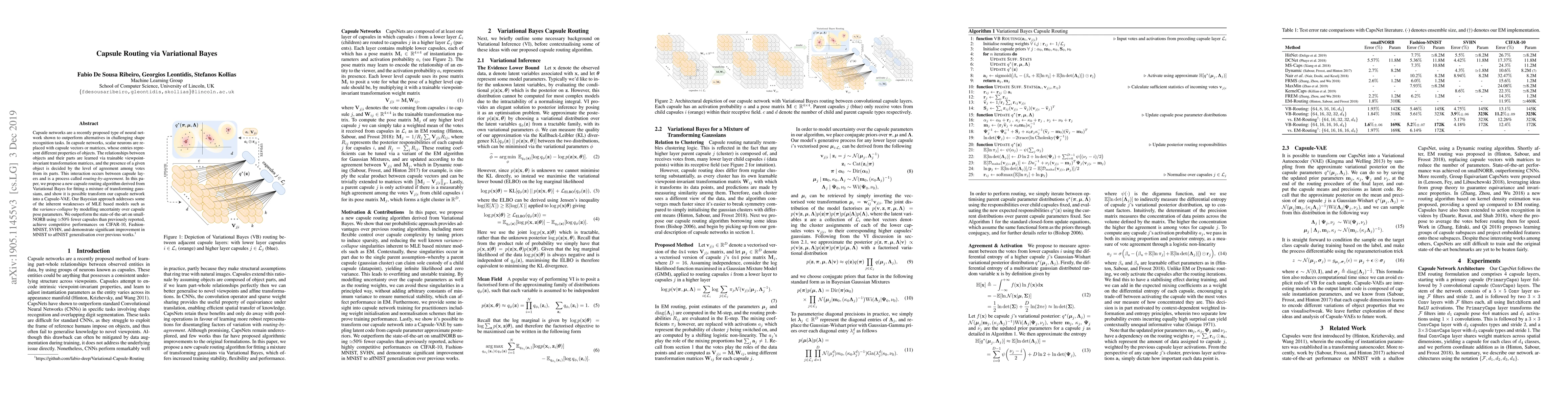 This paper proposes a new capsule routing algorithm based on Variational Bayes to create a Capsule-VAE, addressing weaknesses of maximum likelihood estimation models. The Bayesian approach enhances generalization and outperforms state-of-the-art on several datasets with fewer capsules.