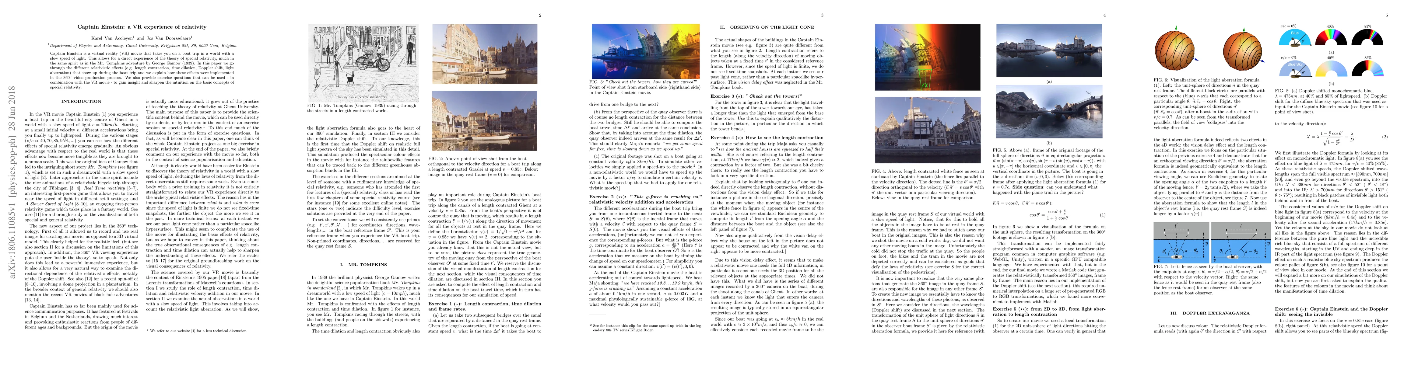 A virtual reality movie experience, Captain Einstein, simulates special relativity effects like length contraction and time dilation in a 360-degree video production. The VR movie allows users to directly experience these concepts, sharpening their intuition on the theory of special relativity.