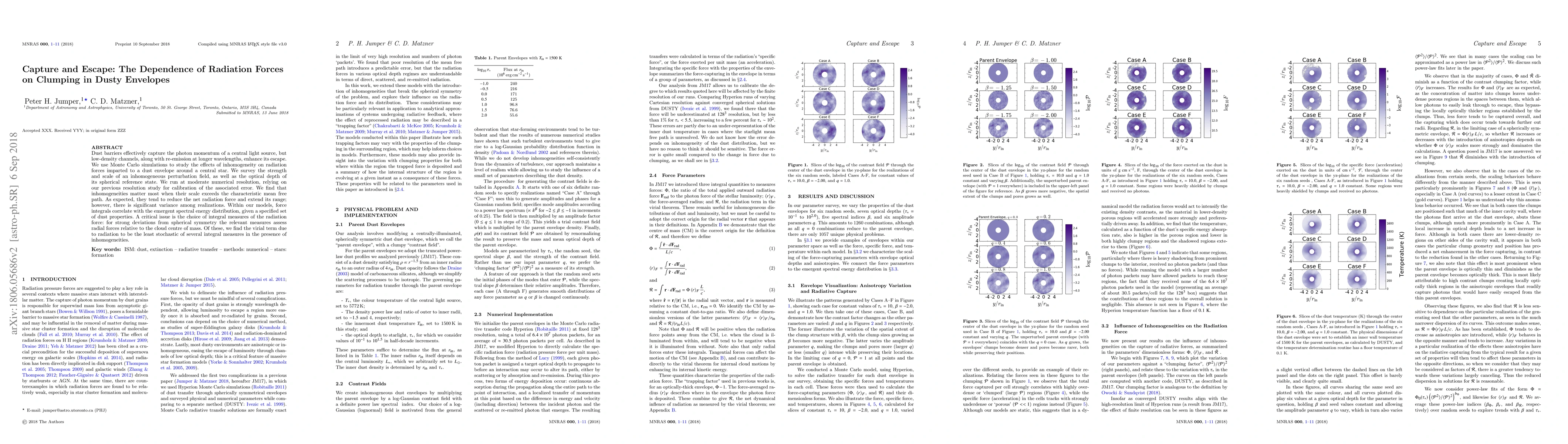 Researchers used simulations to study how inhomogeneities in a dust cloud affect radiation forces around a central star. They found that inhomogeneities can reduce the net radiation force but also introduce significant variance in their effects.