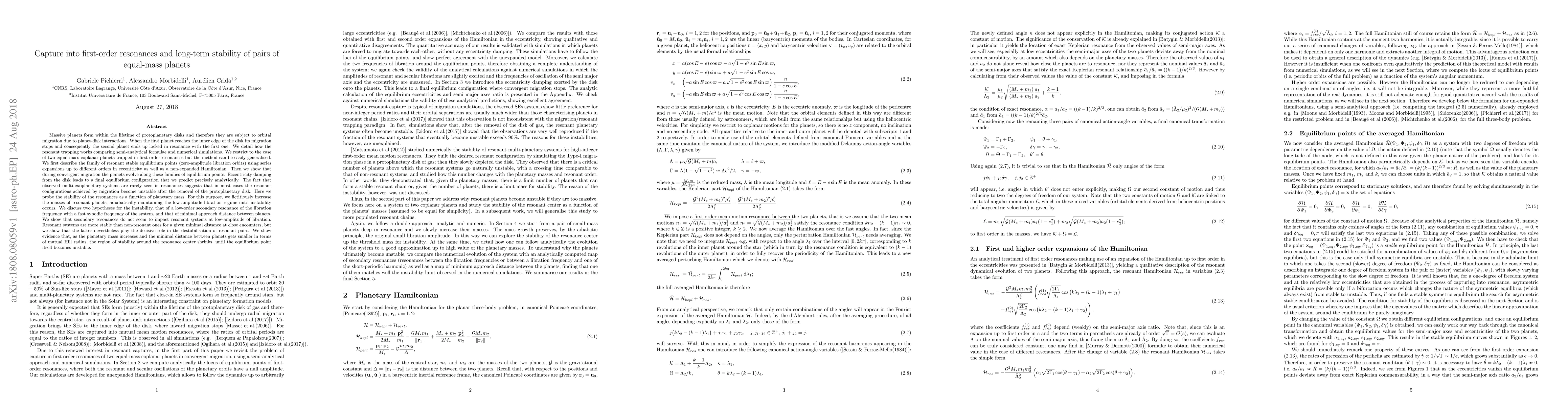 Research explores how massive planets form in protoplanetary disks and become trapped in stable resonances with their companions, finding that the region of stability around these resonance centers shrinks as planetary mass increases.