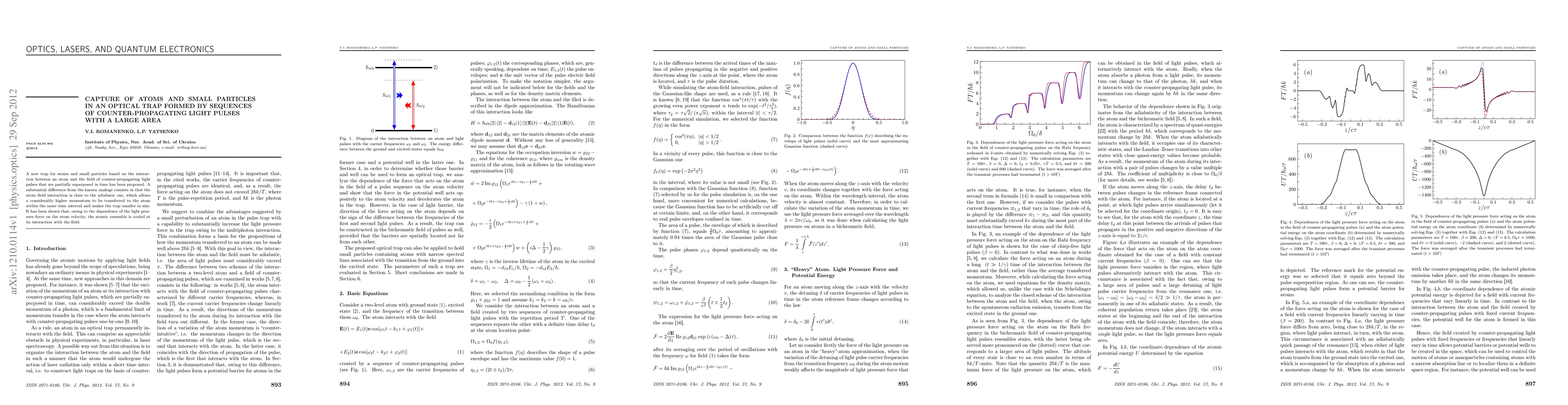 A new trap for atoms and small particles based on the interaction between an atom and the field of counter-propagating light pulses that are partially superposed in time has been proposed. A substantial difference from the known analogs consists in that the atom-field interaction is close to the adiabatic one, which allows a considerably higher momentum to be transferred to the atom within the same time interval and makes the trap smaller in size. It has been shown that, owing to the dependence of the light pressure force on the atom velocity, the atomic ensemble is cooled at its interaction with the field.