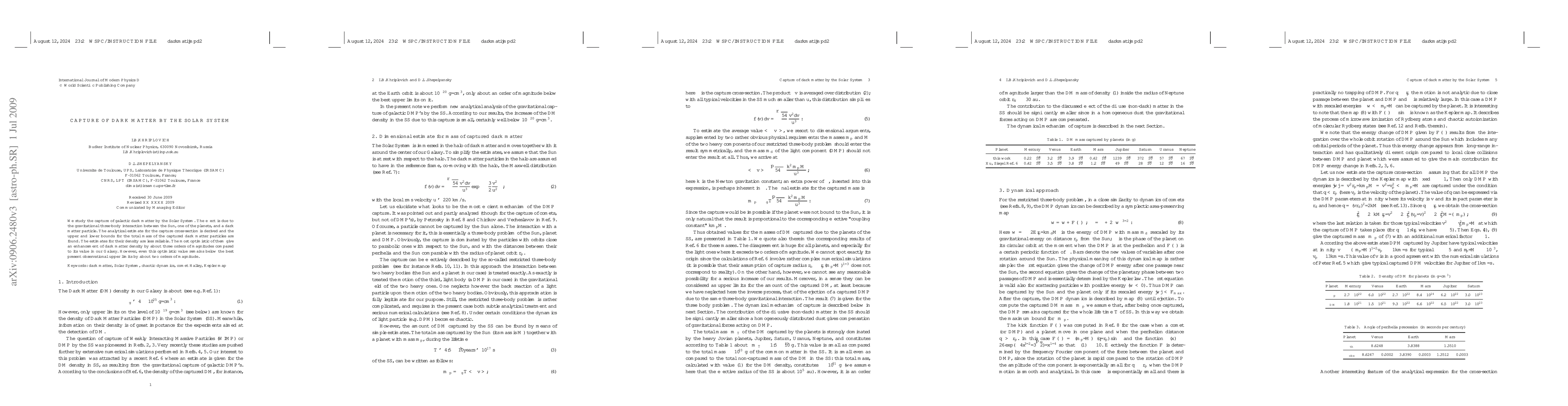This paper investigates the gravitational capture of galactic dark matter by the Sun and planets in the Solar System, deriving an analytical estimate for the capture cross-section and determining bounds for the total mass of captured dark matter. While optimistic estimates suggest a significant density enhancement, these remain well below current observational limits.