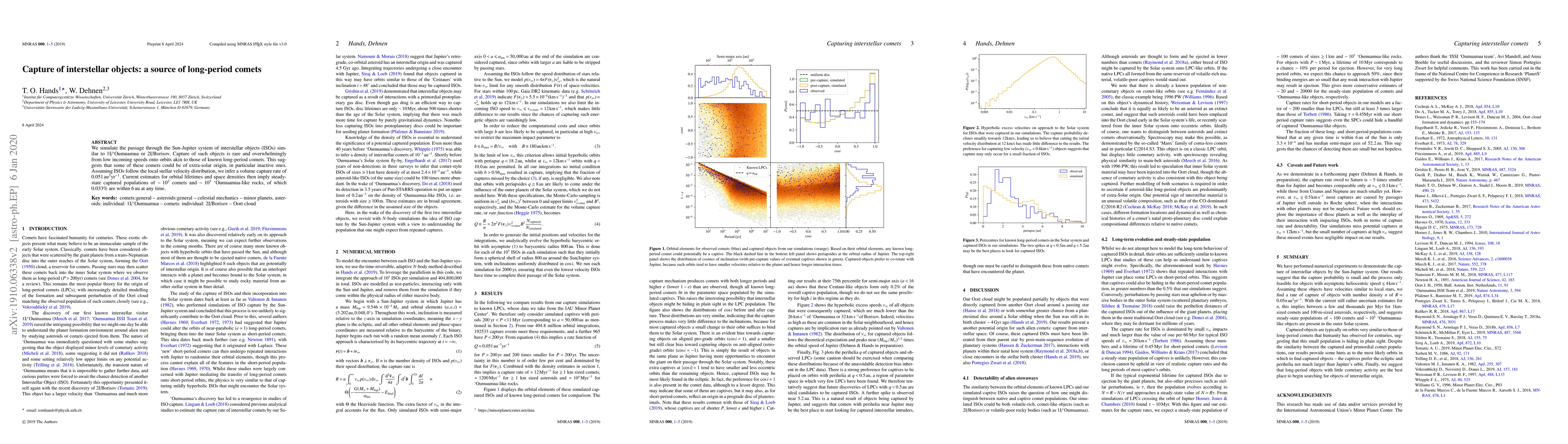 We simulate the passage through the Sun-Jupiter system of interstellar objects (ISOs) similar to 1I/`Oumuamua or 2I/Borisov. Capture of such objects is rare and overwhelmingly from low incoming speeds onto orbits akin to those of known long-period comets. This suggests that some of these comets could be of extra-solar origin, in particular inactive ones. Assuming ISOs follow the local stellar velocity distribution, we infer a volume capture rate of $0.051\,\mathrm{au}^3 \mathrm{yr}^{-1}$. Current estimates for orbital lifetimes and space densities then imply steady-state captured populations of $\sim10^2$ comets and $\sim10^5$ `Oumuamua-like rocks, of which 0.033% are within 6au at any time.