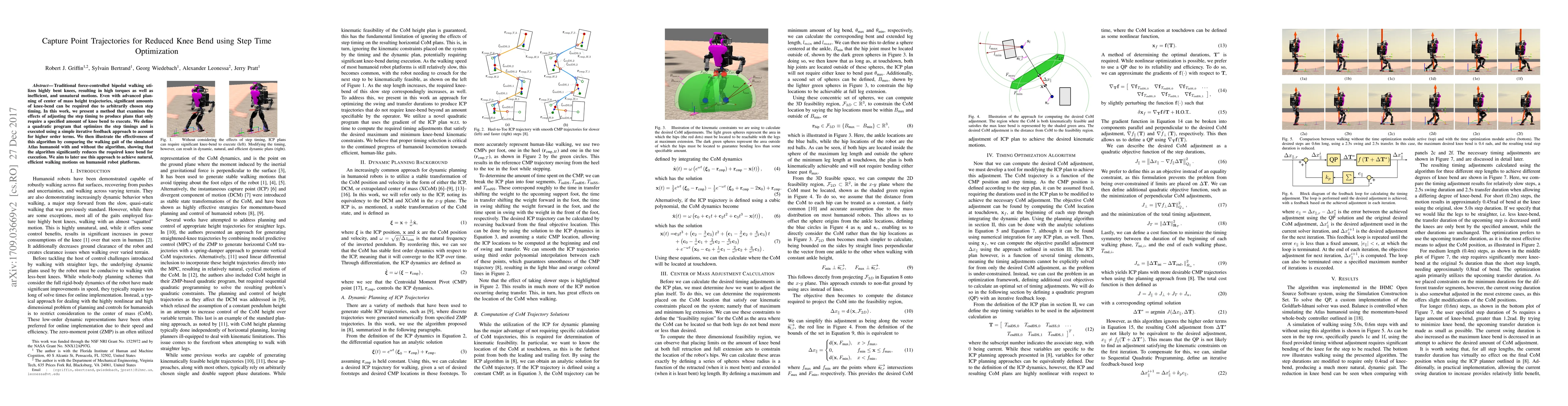 This research introduces a method optimizing step timing in bipedal walking to minimize knee bend, reducing high torques and unnatural motions. The approach uses a quadratic program and iterative feedback, effectively demonstrated by significantly decreasing knee bend in simulated Atlas humanoid walking, aiming for natural and efficient humanoid robot motion.