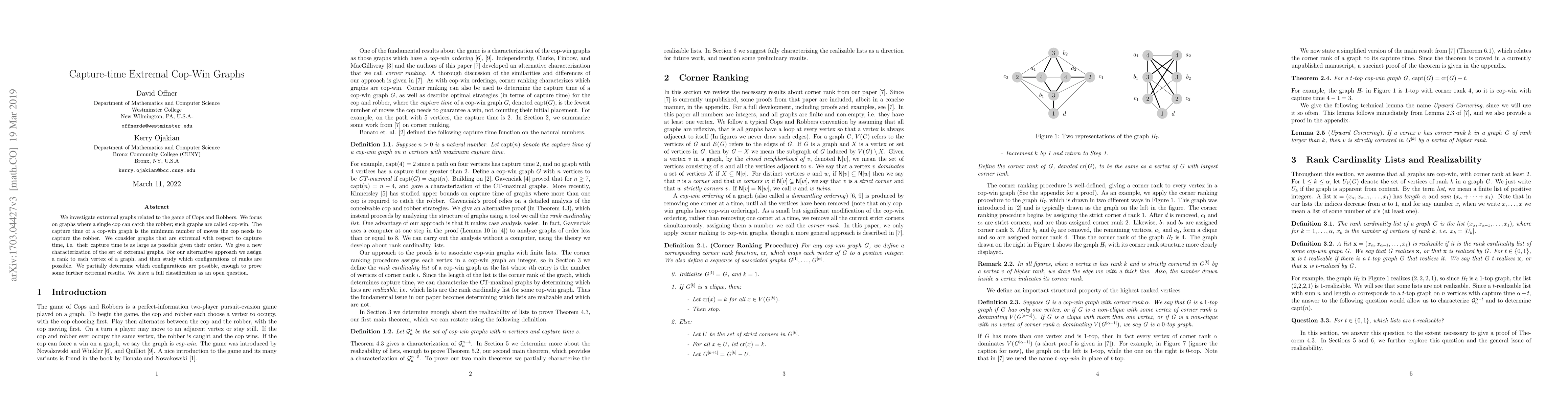 We investigate extremal graphs related to the game of Cops and Robbers. We focus on graphs where a single cop can catch the robber; such graphs are called cop-win. The capture time of a cop-win graph is the minimum number of moves the cop needs to capture the robber. We consider graphs that are extremal with respect to capture time, i.e. their capture time is as large as possible given their order. We give a new characterization of the set of extremal graphs. For our alternative approach we assign a rank to each vertex of a graph, and then study which configurations of ranks are possible. We partially determine which configurations are possible, enough to prove some further extremal results. We leave a full classification as an open question.