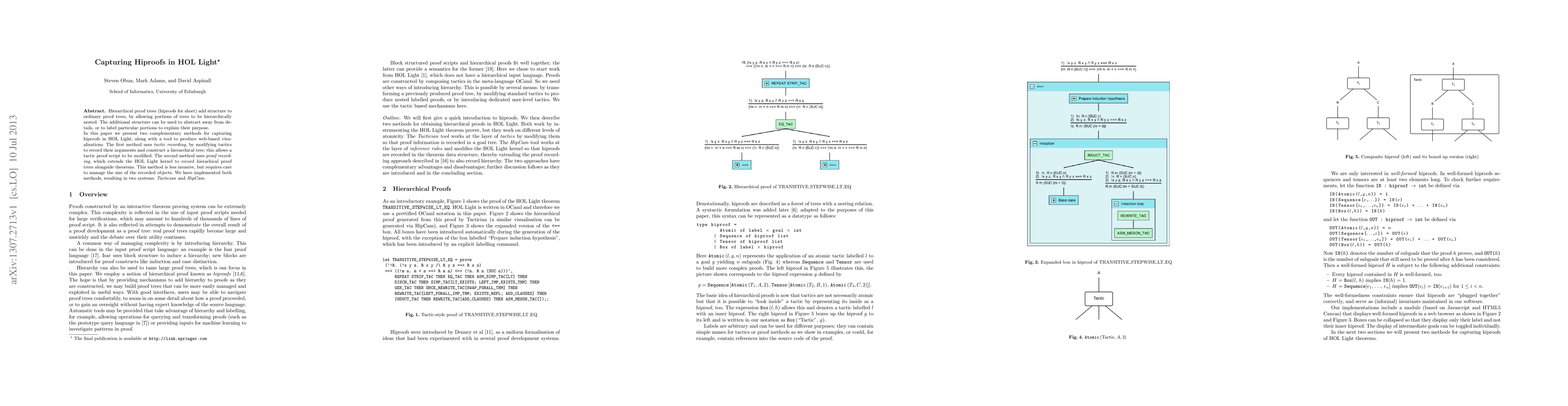 Researchers developed two methods to visualize hiproofs in HOL Light, a proof tree structure that adds hierarchy for abstraction and labeling, enabling more intuitive proof scripts.