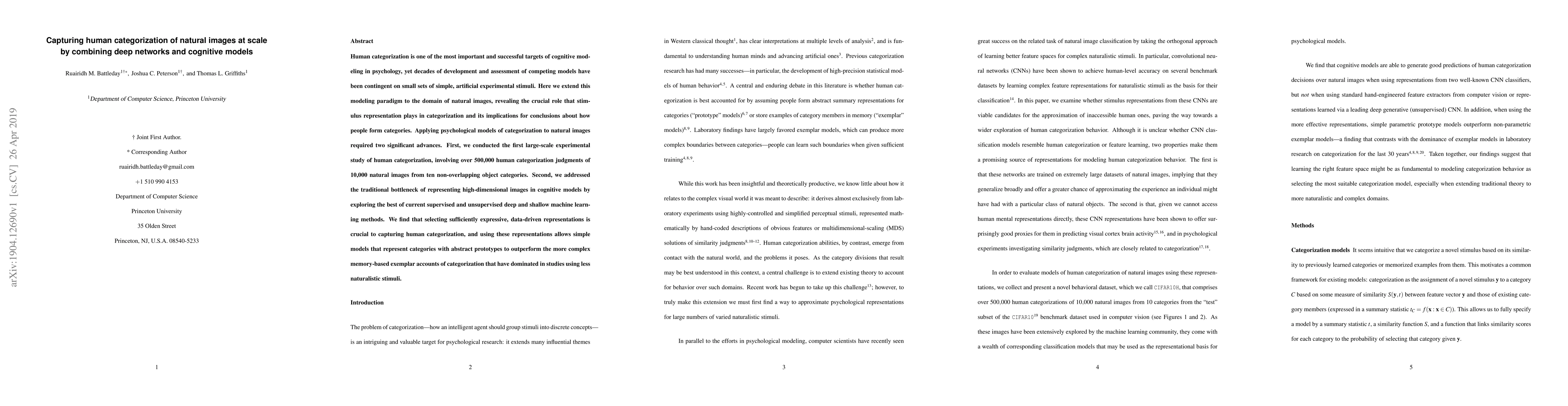 This study used deep networks and cognitive models to analyze human categorization of natural images on a large scale, finding that simple models with abstract prototypes outperform more complex memory-based approaches.