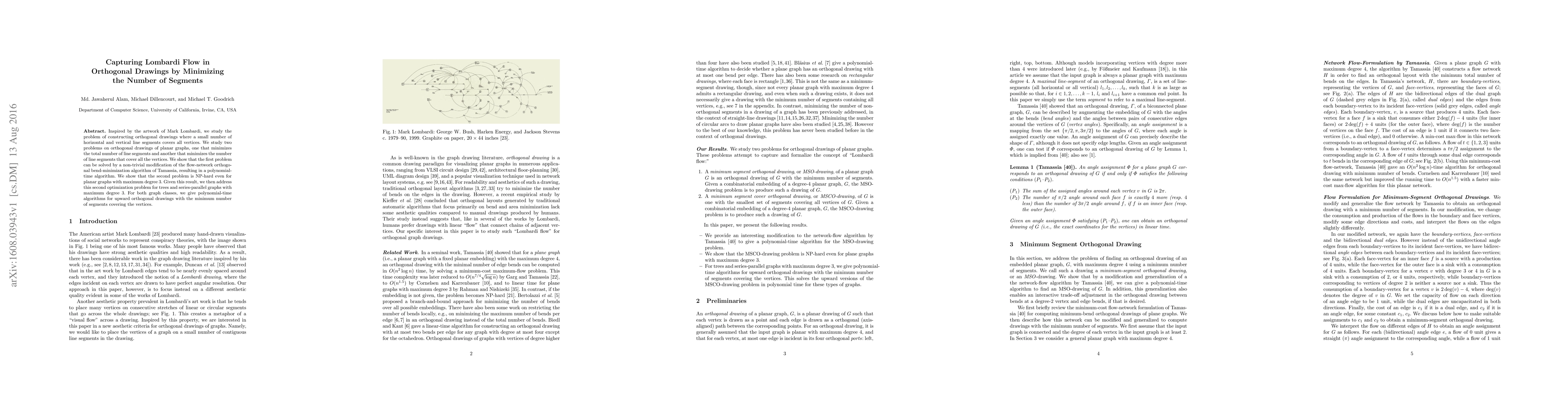 This paper explores the creation of orthogonal graph drawings that minimize the number of line segments, inspired by Mark Lombardi's artwork. It presents a polynomial-time algorithm for minimizing total segments and proves NP-hardness for minimizing segments covering all vertices in general planar graphs, while providing polynomial-time solutions for trees and series-parallel graphs.