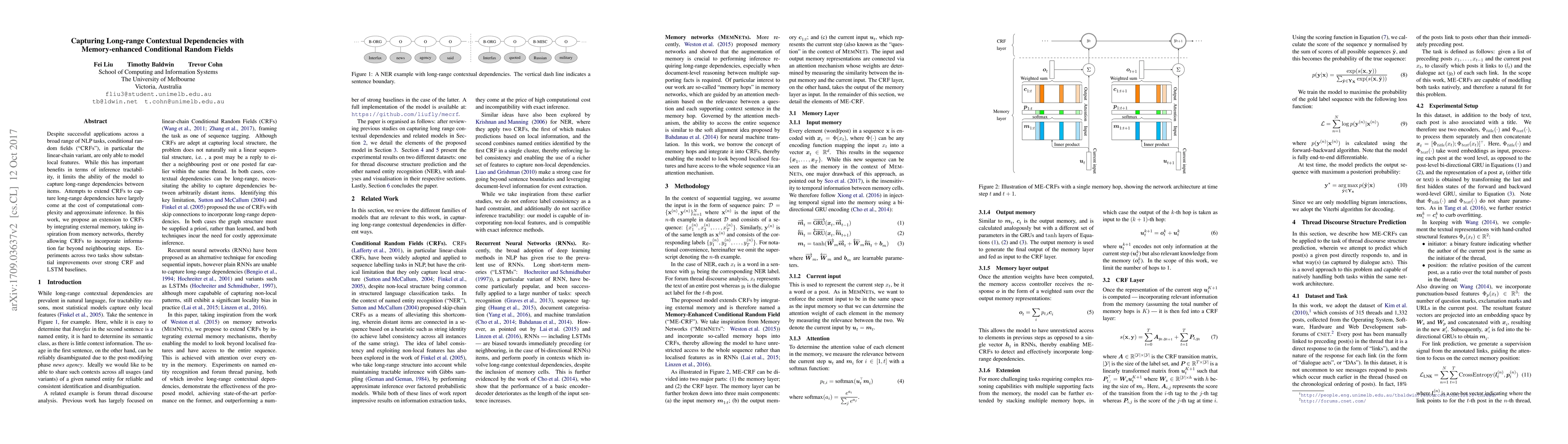 Researchers propose a new method for CRFs to capture long-range contextual dependencies using external memory, improving performance over traditional methods.