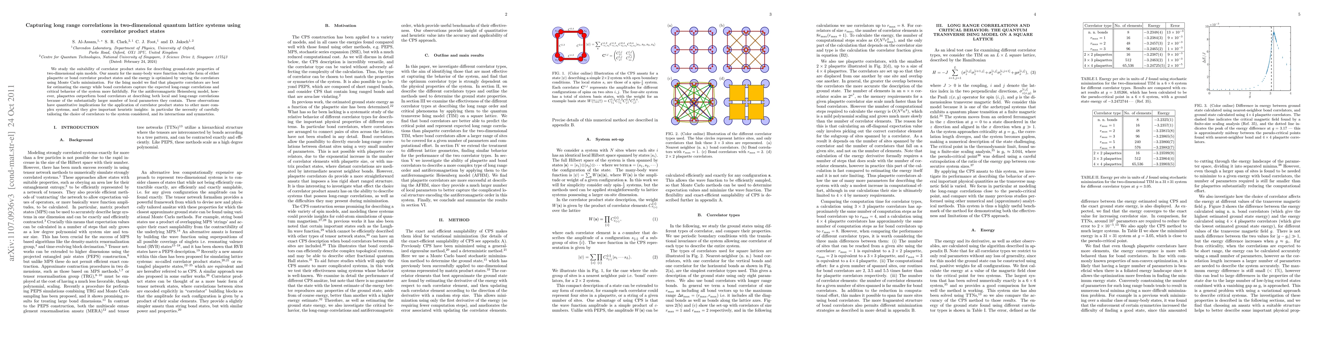 This paper investigates correlator product states for describing ground-state properties in two-dimensional spin models, finding that plaquette correlators are effective for the Ising model but bond correlators better capture long-range correlations. For the antiferromagnetic Heisenberg model, plaquette correlators outperform bond correlators due to more local parameters, highlighting the importance of correlator choice based on system interactions and symmetries.