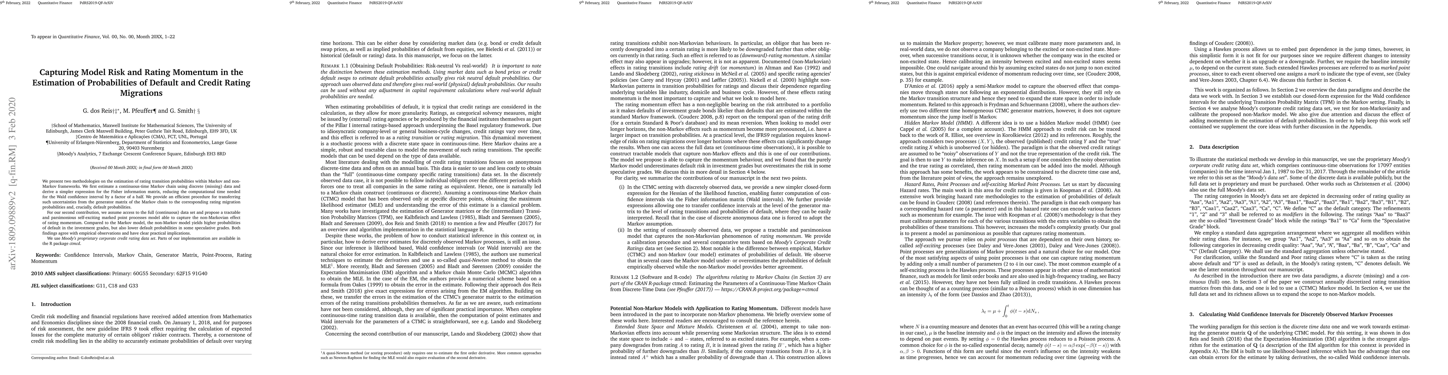 The paper introduces new closed-form expressions for the Fisher information matrix, an efficient procedure for transferring uncertainties, and a self-exciting marked point processes model to capture non-Markovian effects in credit rating transitions.