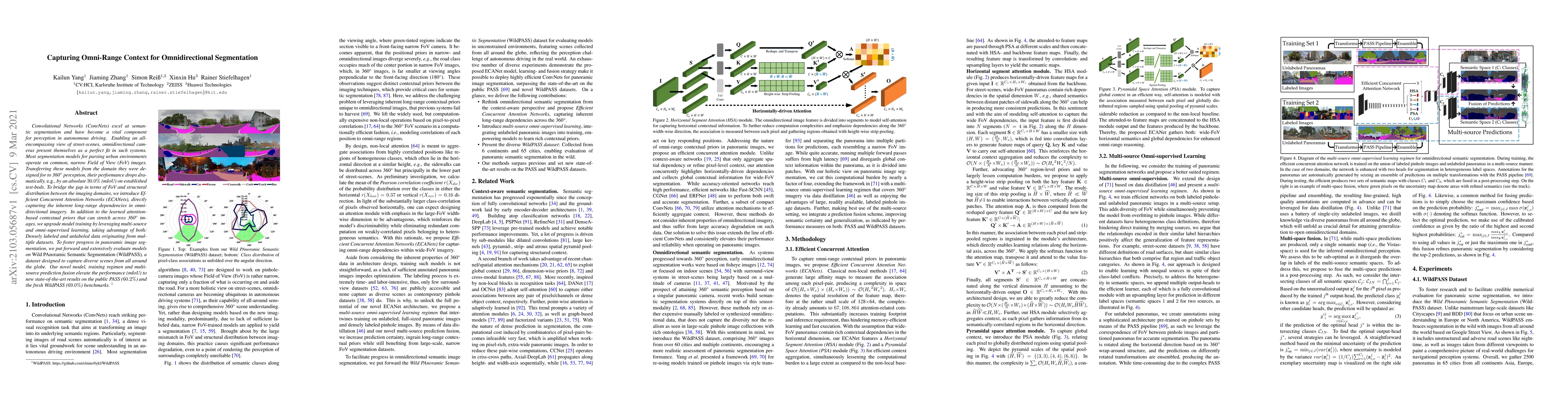 Convolutional Networks (ConvNets) excel at semantic segmentation and have become a vital component for perception in autonomous driving. Enabling an all-encompassing view of street-scenes, omnidirectional cameras present themselves as a perfect fit in such systems. Most segmentation models for parsing urban environments operate on common, narrow Field of View (FoV) images. Transferring these models from the domain they were designed for to 360-degree perception, their performance drops dramatically, e.g., by an absolute 30.0% (mIoU) on established test-beds. To bridge the gap in terms of FoV and structural distribution between the imaging domains, we introduce Efficient Concurrent Attention Networks (ECANets), directly capturing the inherent long-range dependencies in omnidirectional imagery. In addition to the learned attention-based contextual priors that can stretch across 360-degree images, we upgrade model training by leveraging multi-source and omni-supervised learning, taking advantage of both: Densely labeled and unlabeled data originating from multiple datasets. To foster progress in panoramic image segmentation, we put forward and extensively evaluate models on Wild PAnoramic Semantic Segmentation (WildPASS), a dataset designed to capture diverse scenes from all around the globe. Our novel model, training regimen and multi-source prediction fusion elevate the performance (mIoU) to new state-of-the-art results on the public PASS (60.2%) and the fresh WildPASS (69.0%) benchmarks.